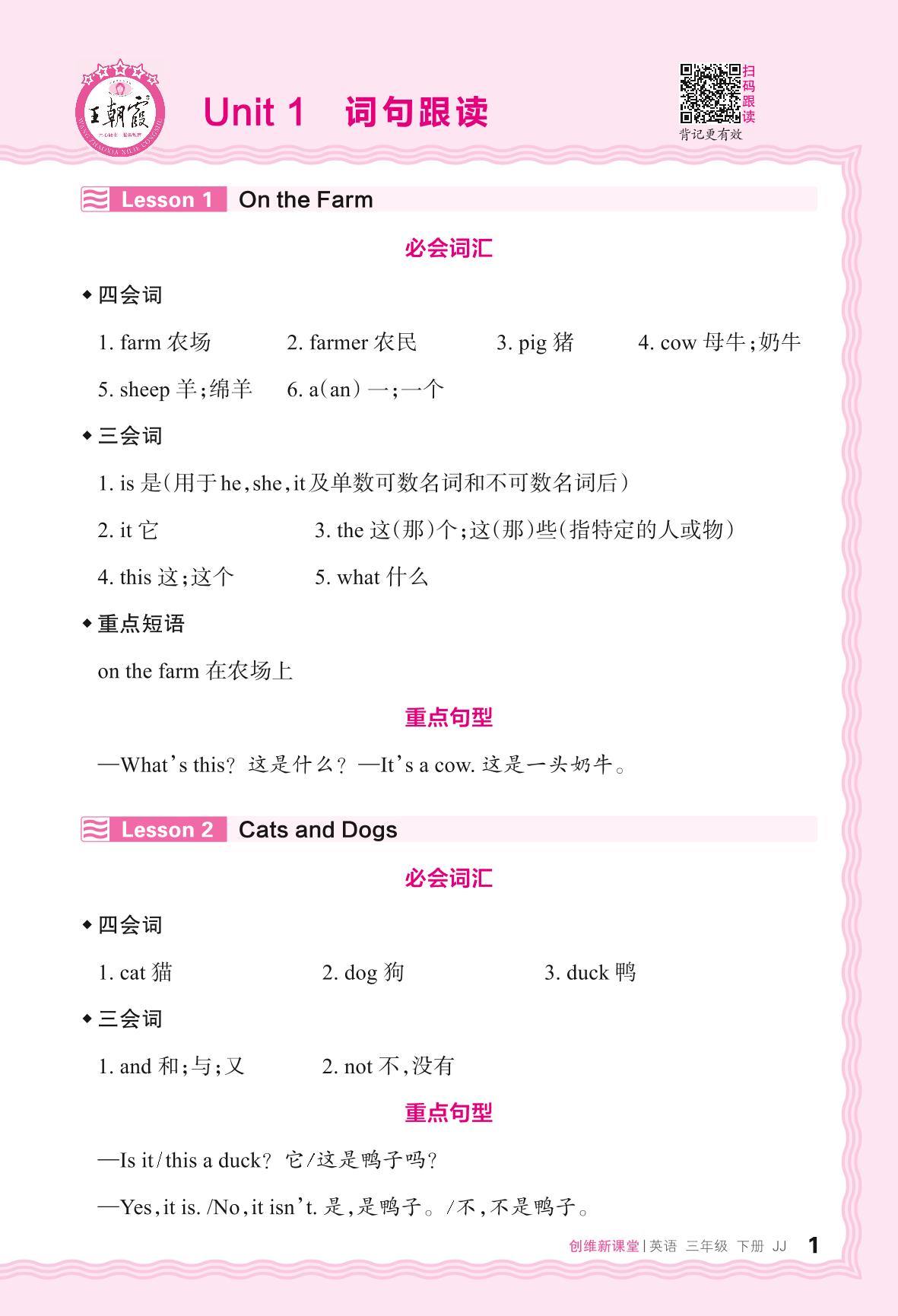 2024春下册三年级英语冀教版 Unit 1 词句跟读