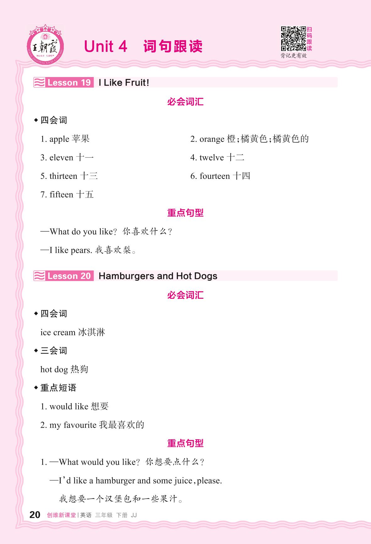 2024春下册三年级英语冀教版 Unit 4 词句跟读