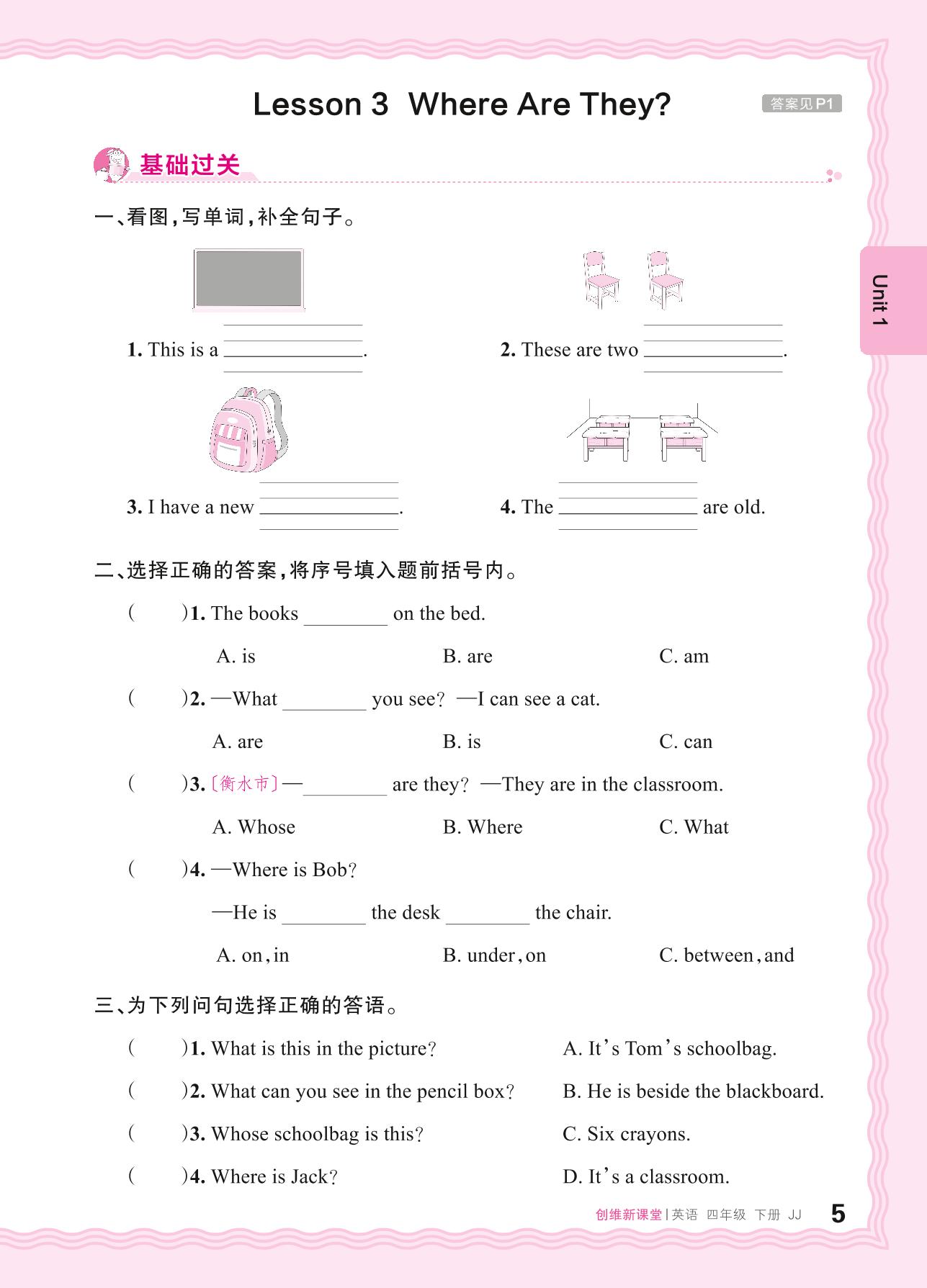2024春下册四年级英语冀教版 Unit 1—Lesson 3 Where Are They?