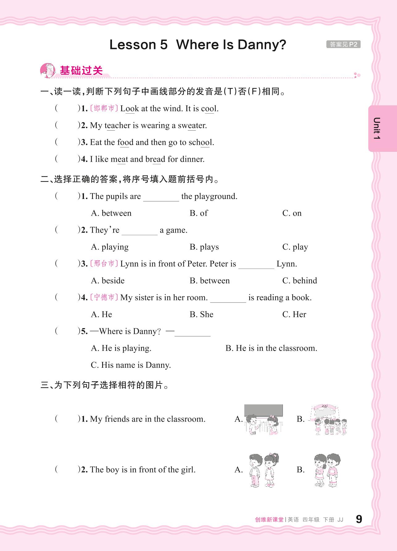 2024春下册四年级英语冀教版 Unit 1—Lesson 5 Where Is Danny?