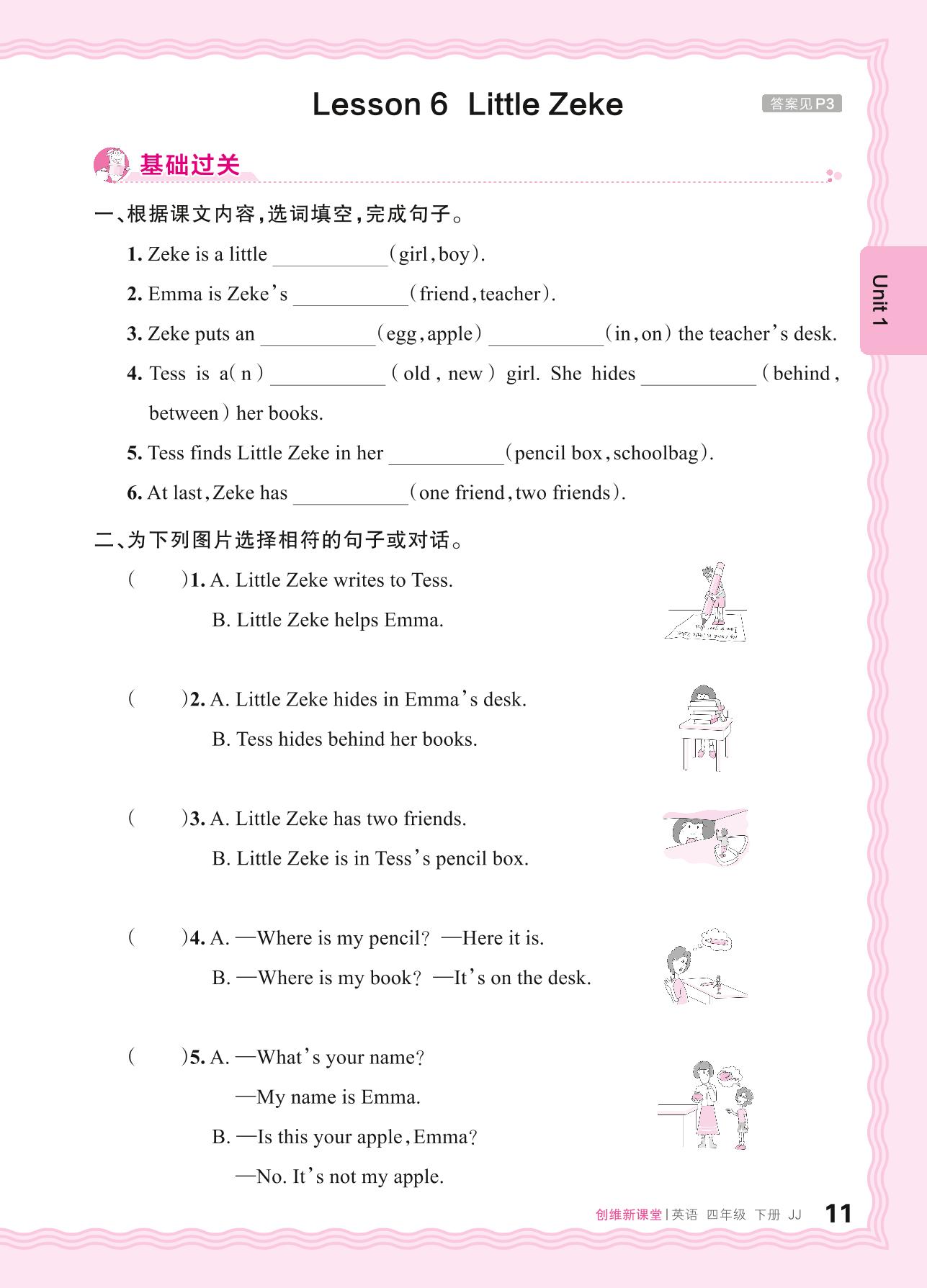 2024春下册四年级英语冀教版 Unit 1—Lesson 6 Little Zeke