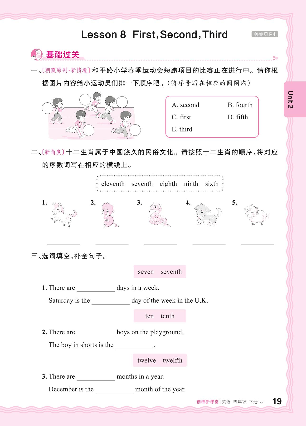 2024春下册四年级英语冀教版 Unit 2—Lesson 8 First,Second,Third