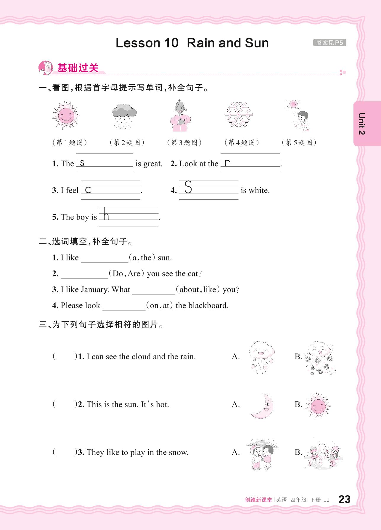 2024春下册四年级英语冀教版 Unit 2—Lesson 10 Rain and Sun