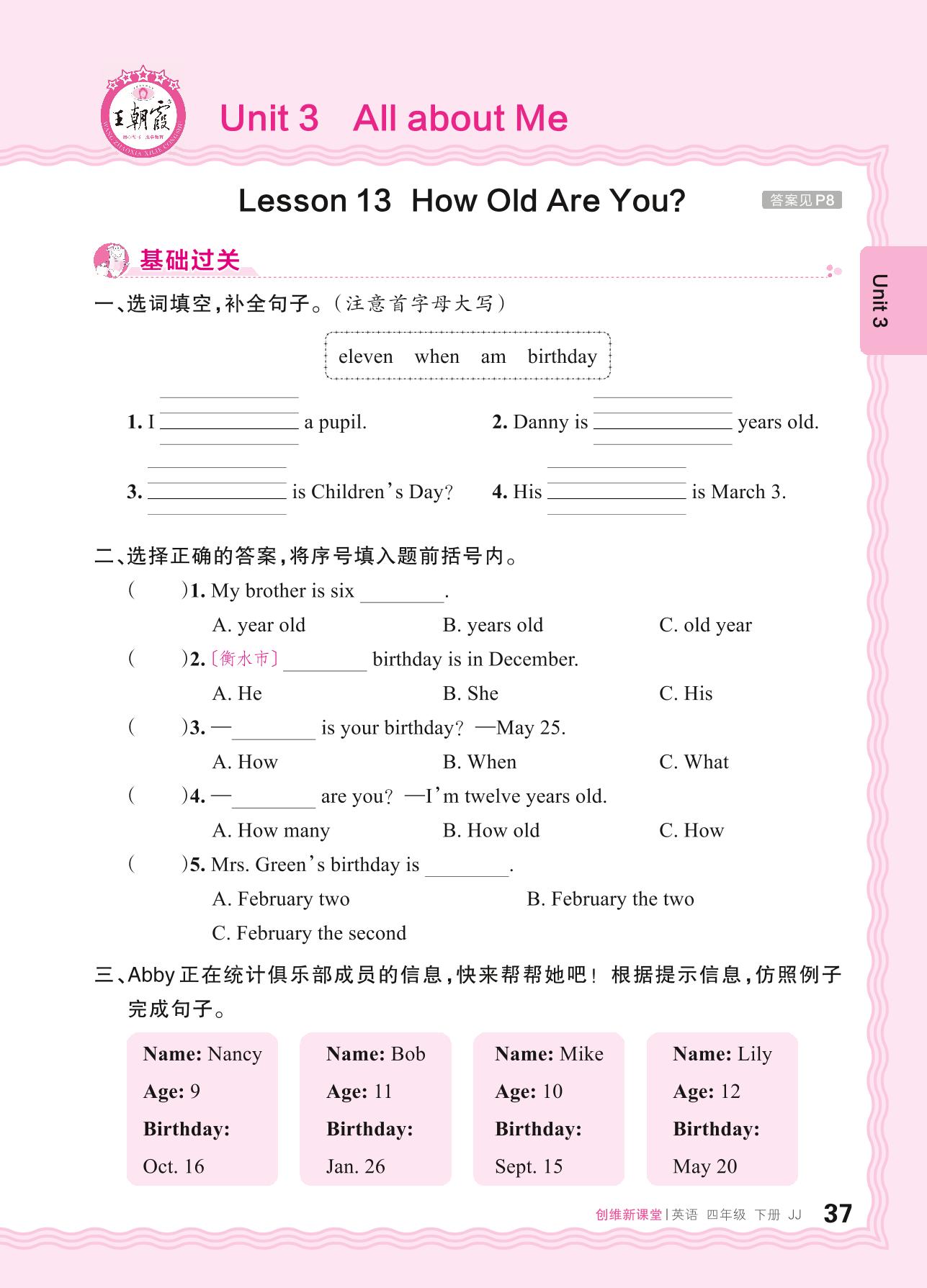 2024春下册四年级英语冀教版 Unit 3—Lesson 13 How Old Are You?
