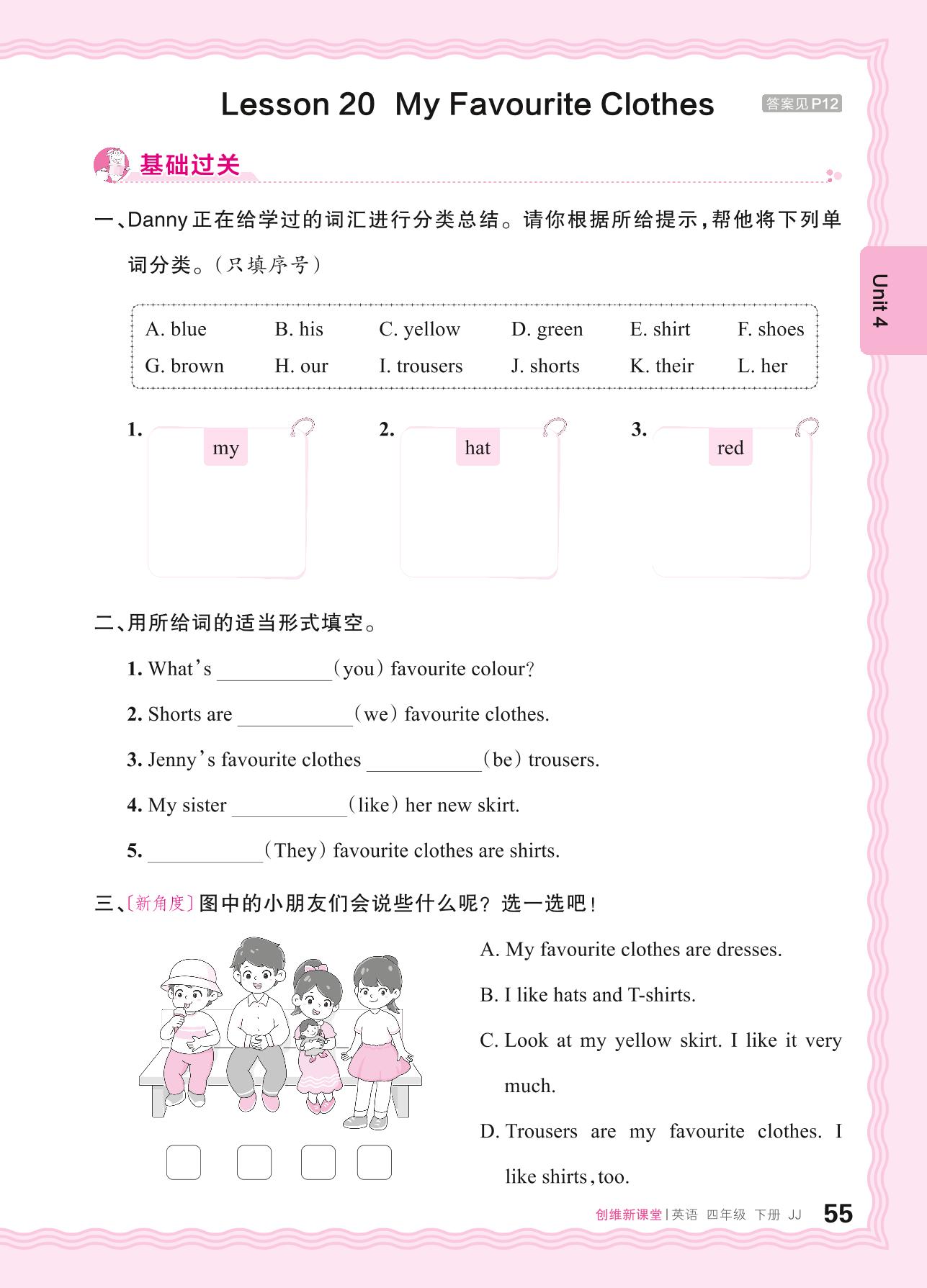 2024春下册四年级英语冀教版 Unit 4—Lesson 20 My Favourite Clothes