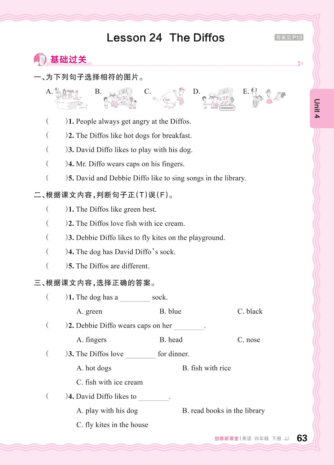 2024春下册四年级英语冀教版 Unit 4—Lesson 24 The Diffos