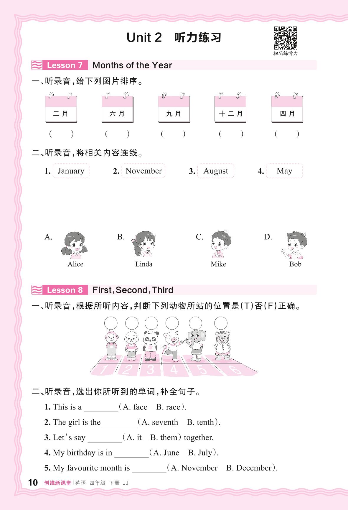 2024春下册四年级英语冀教版 Unit 2 听力练习