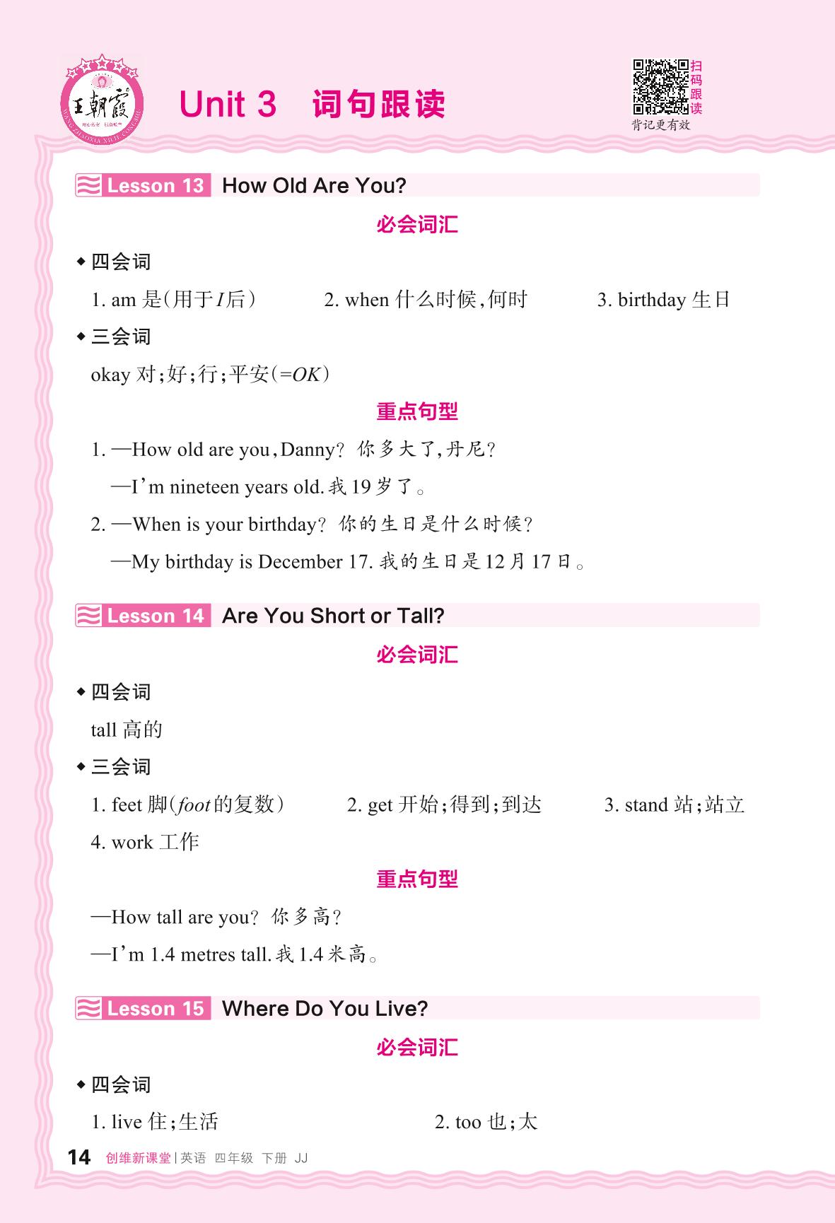 2024春下册四年级英语冀教版 Unit 3 词句跟读