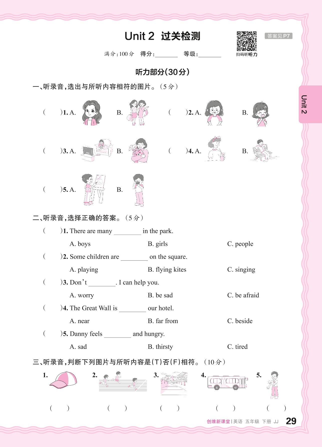 2024春下册五年级英语冀教版 Unit 2 过关检测