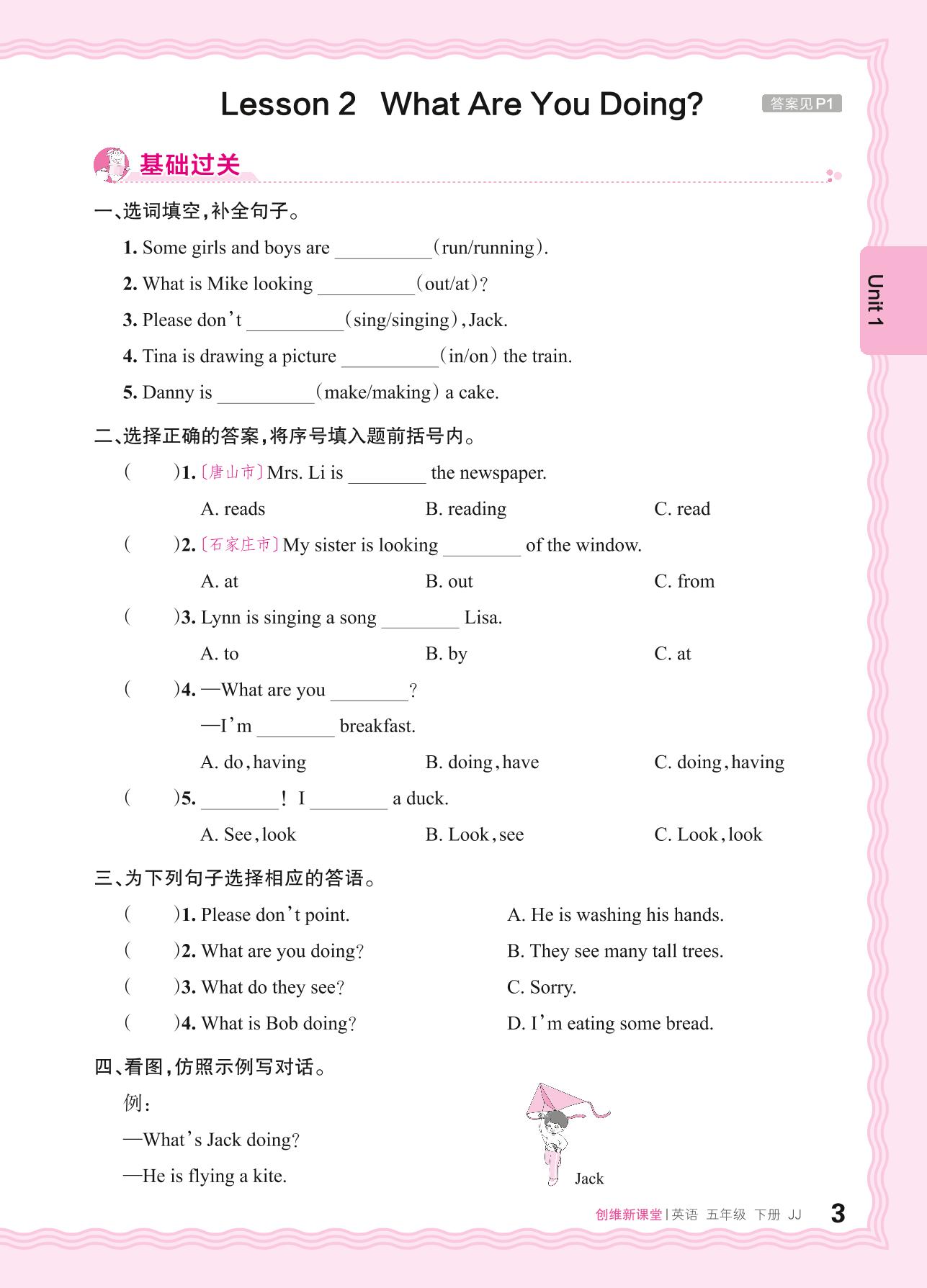 2024春下册五年级英语冀教版 Unit 1—Lesson 2 What Are You Doing?