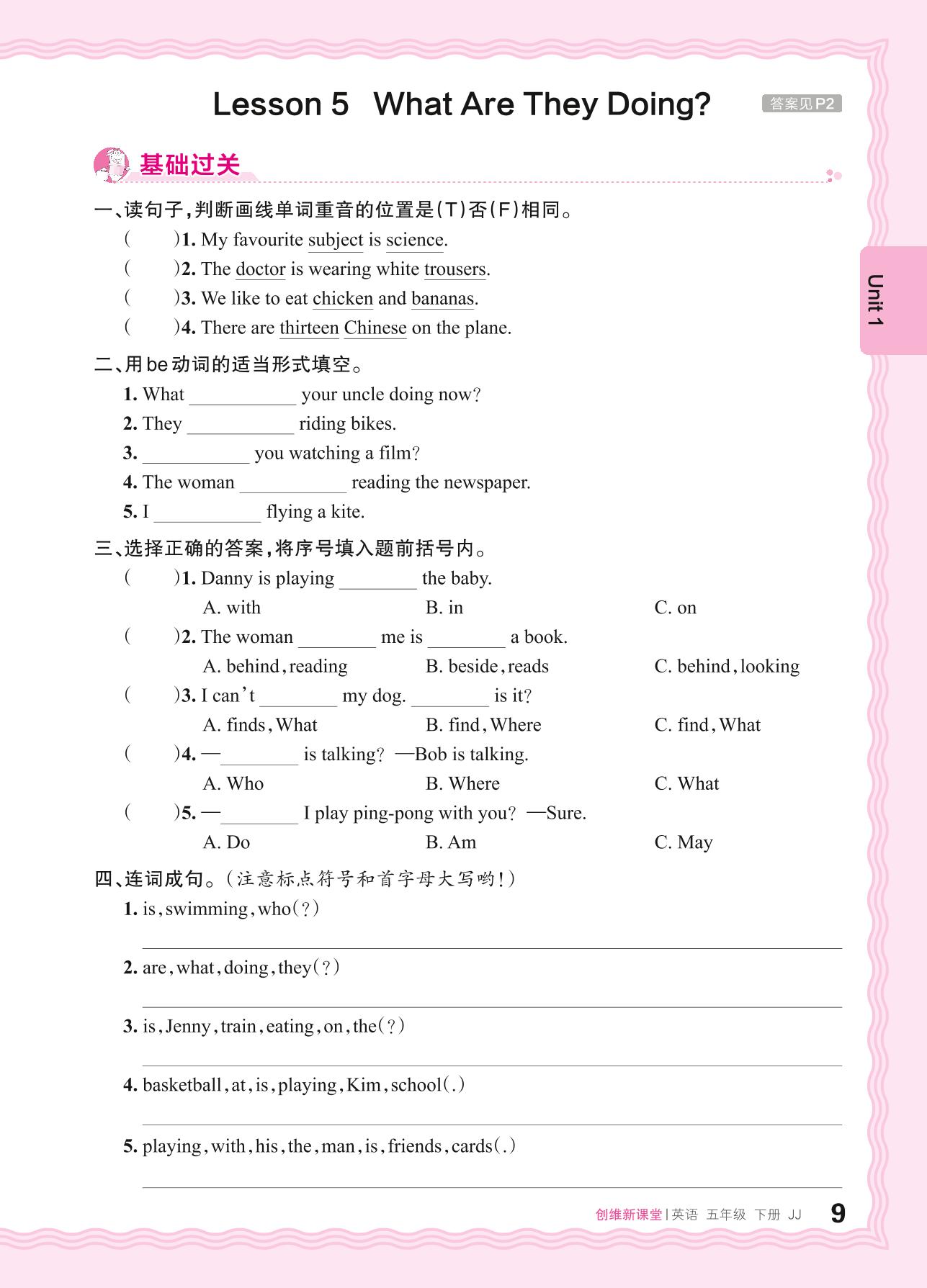 2024春下册五年级英语冀教版 Unit 1—Lesson 5 What Are They Doing?