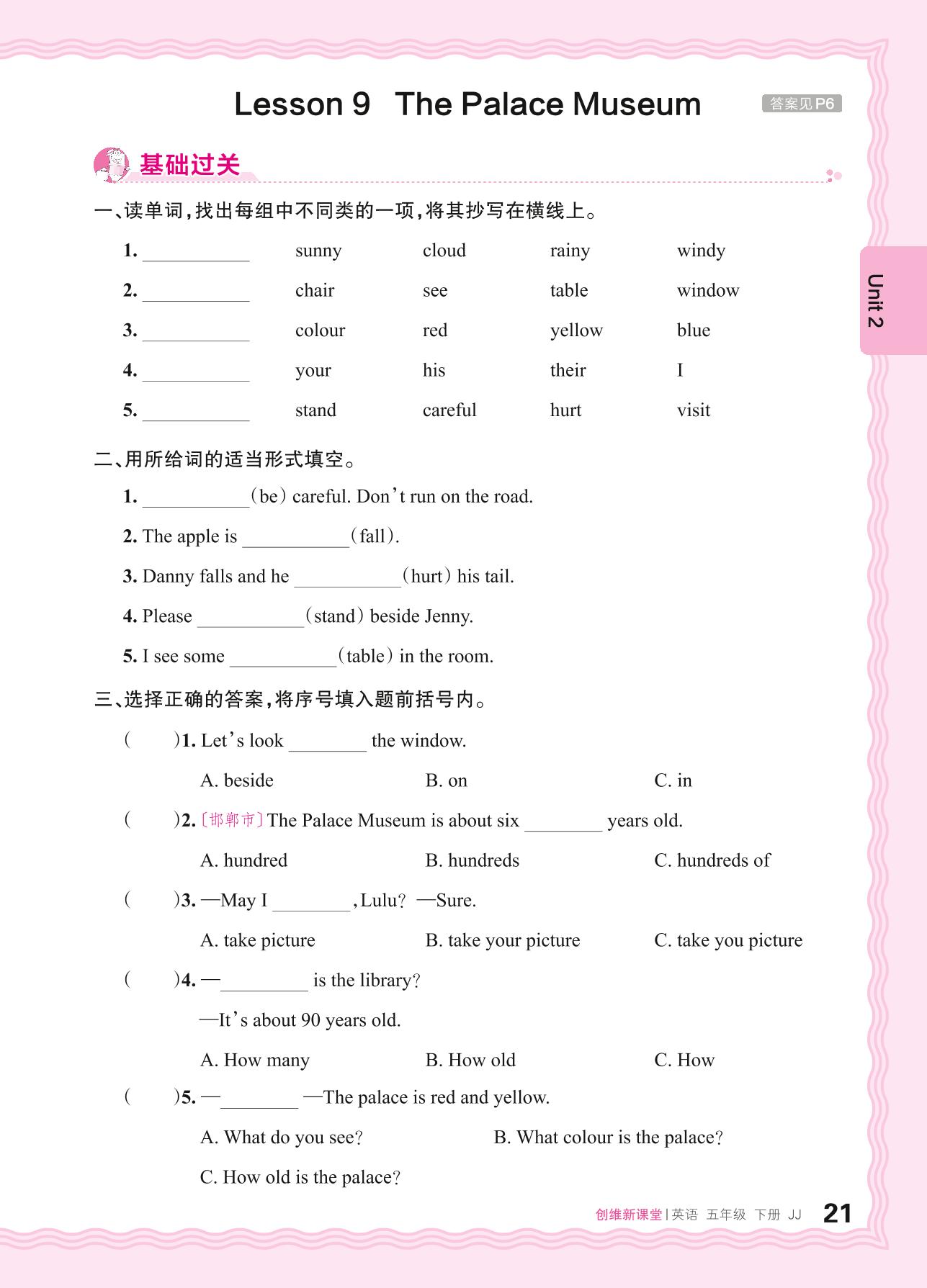 2024春下册五年级英语冀教版 Unit 2—Lesson 9 The Palace Museum