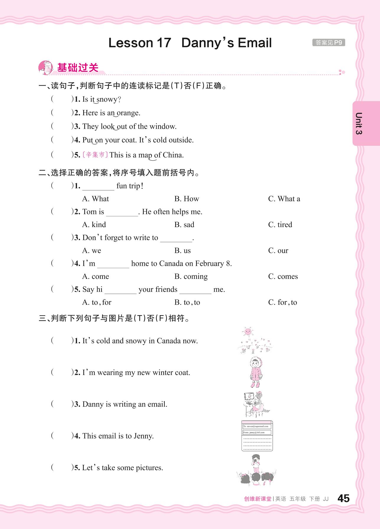 2024春下册五年级英语冀教版 Unit 3—Lesson 17 Danny's Email
