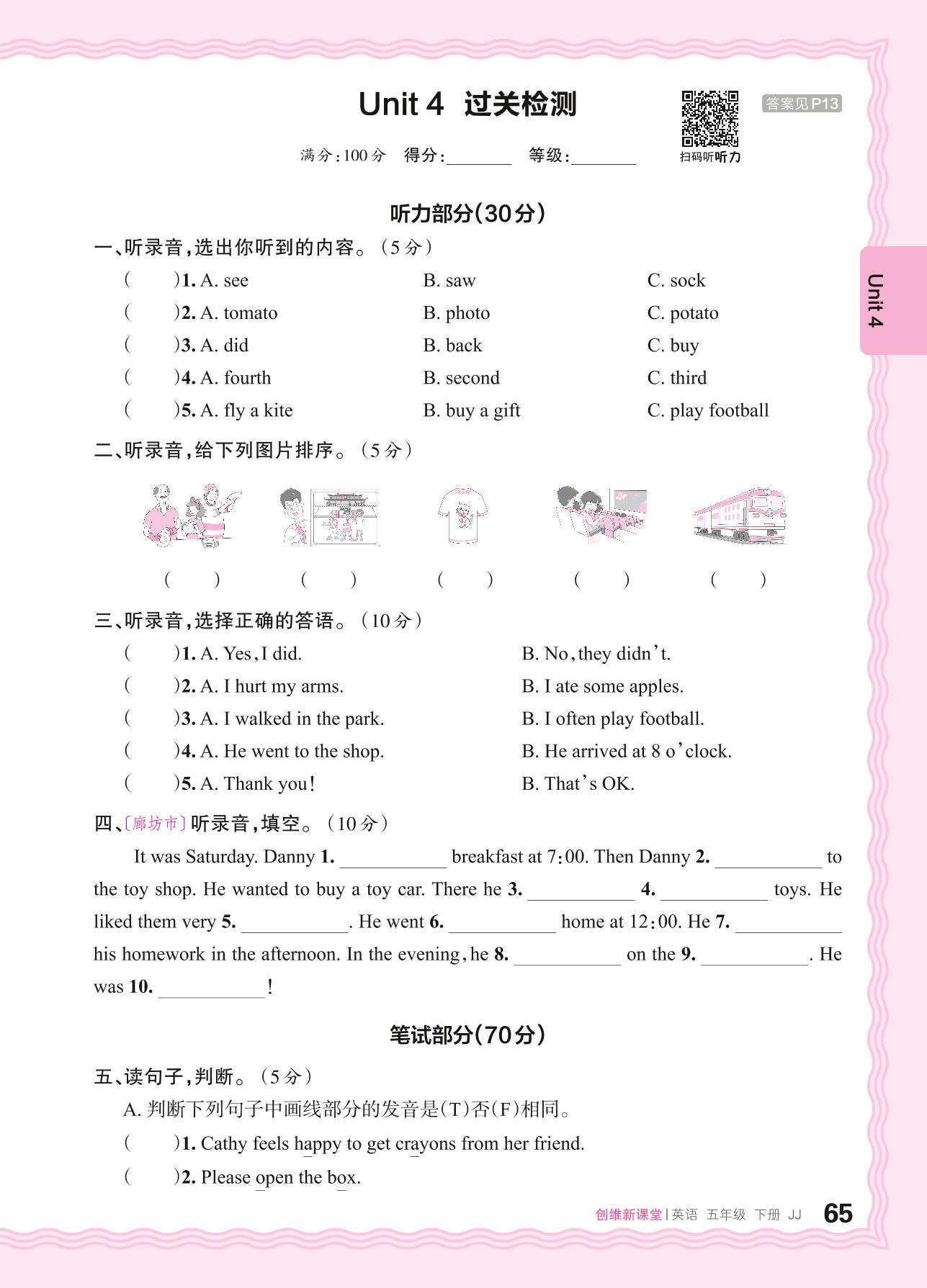 五年级英语冀教版下册单元卷
