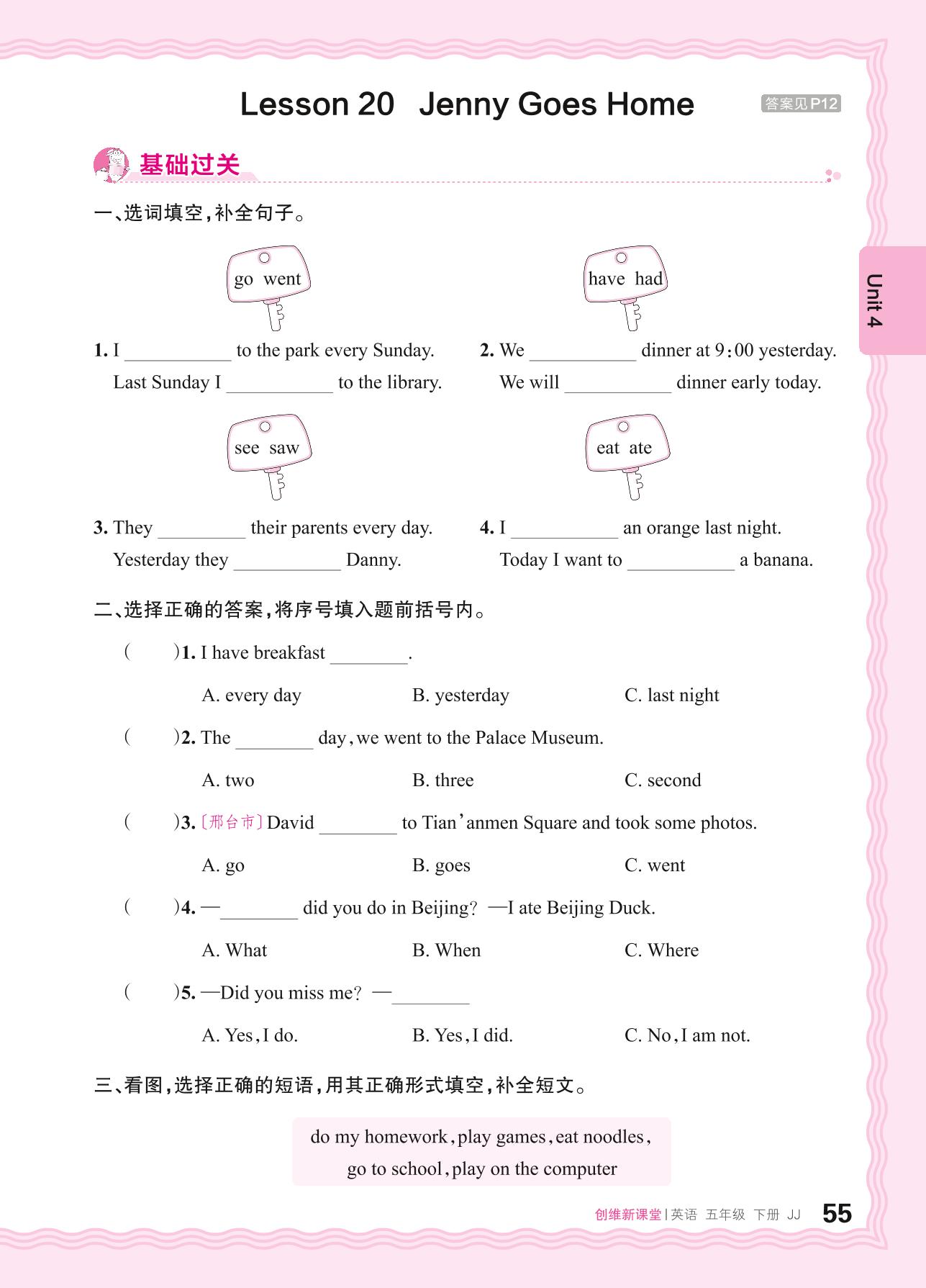 2024春下册五年级英语冀教版 Unit 4—Lesson 20 Jenny Goes Home