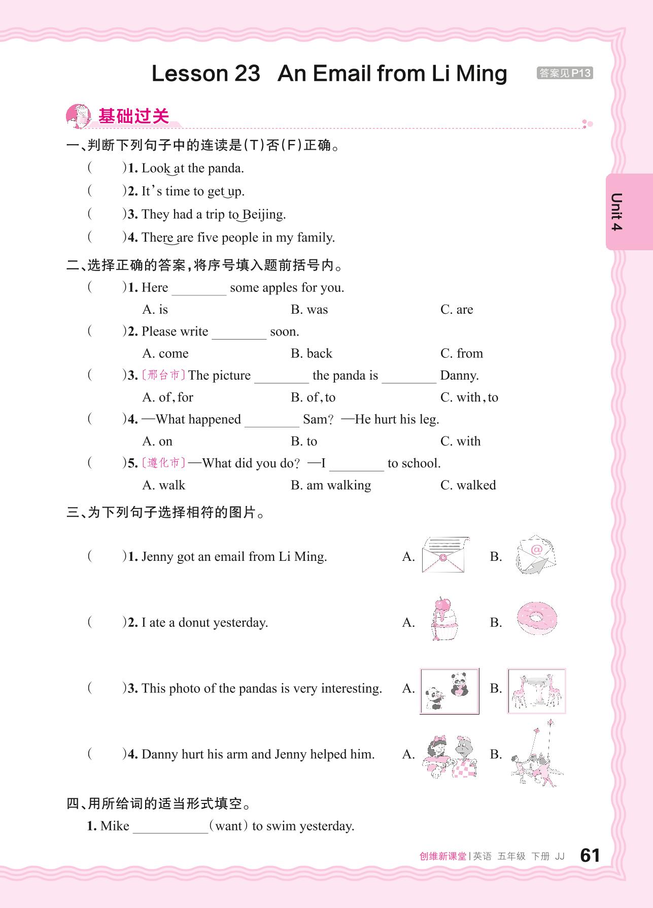 2024春下册五年级英语冀教版 Unit 4—Lesson 23 An Email from Li Ming