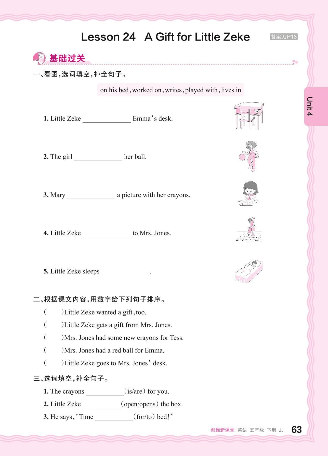 2024春下册五年级英语冀教版 Unit 4—Lesson 24 A Gift for Little Zeke