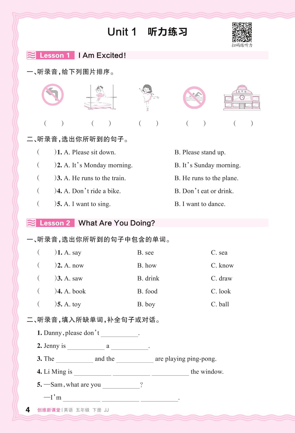 2024春下册五年级英语冀教版 Unit 1 听力练习