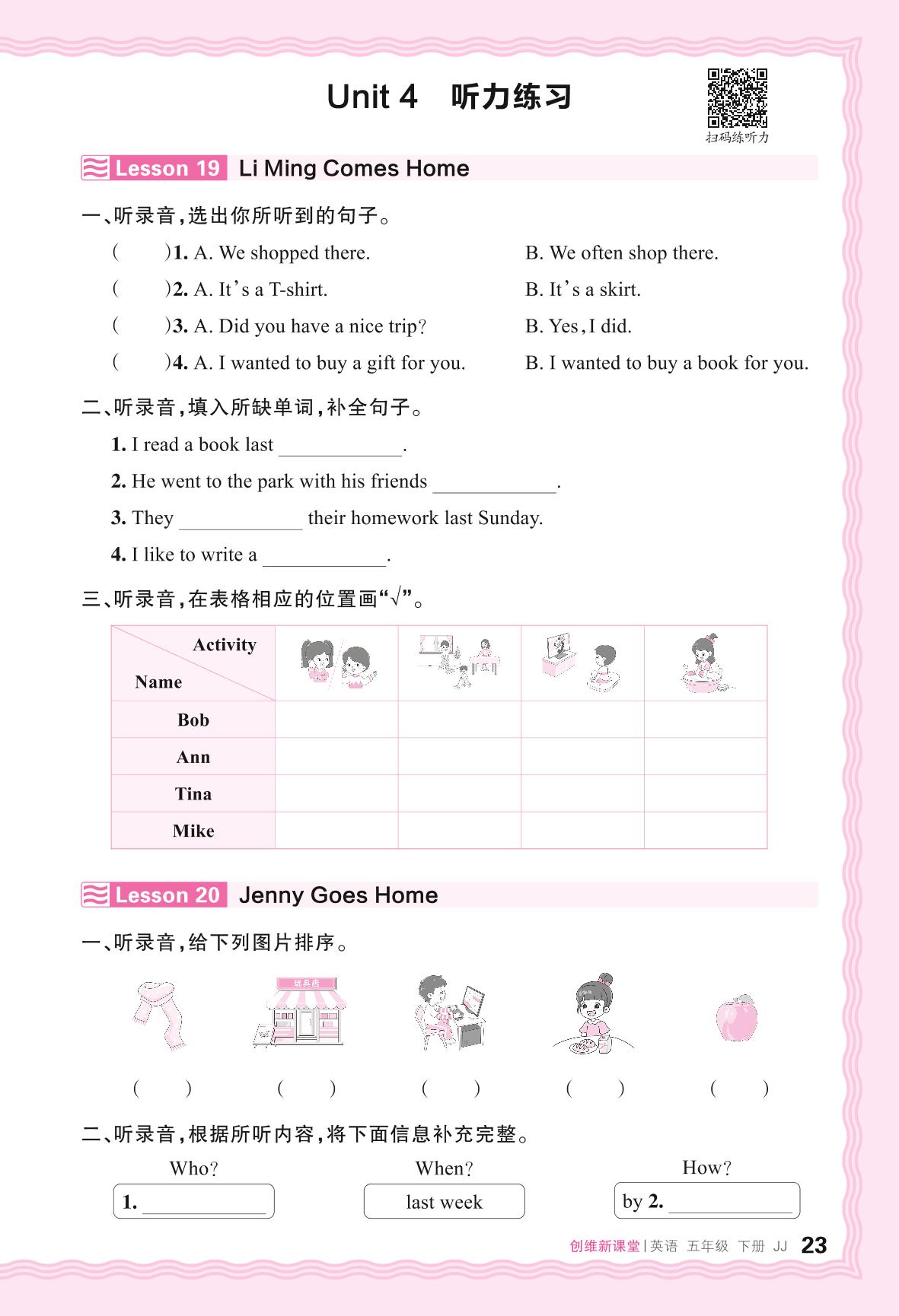 2024春下册五年级英语冀教版 Unit 4 听力练习