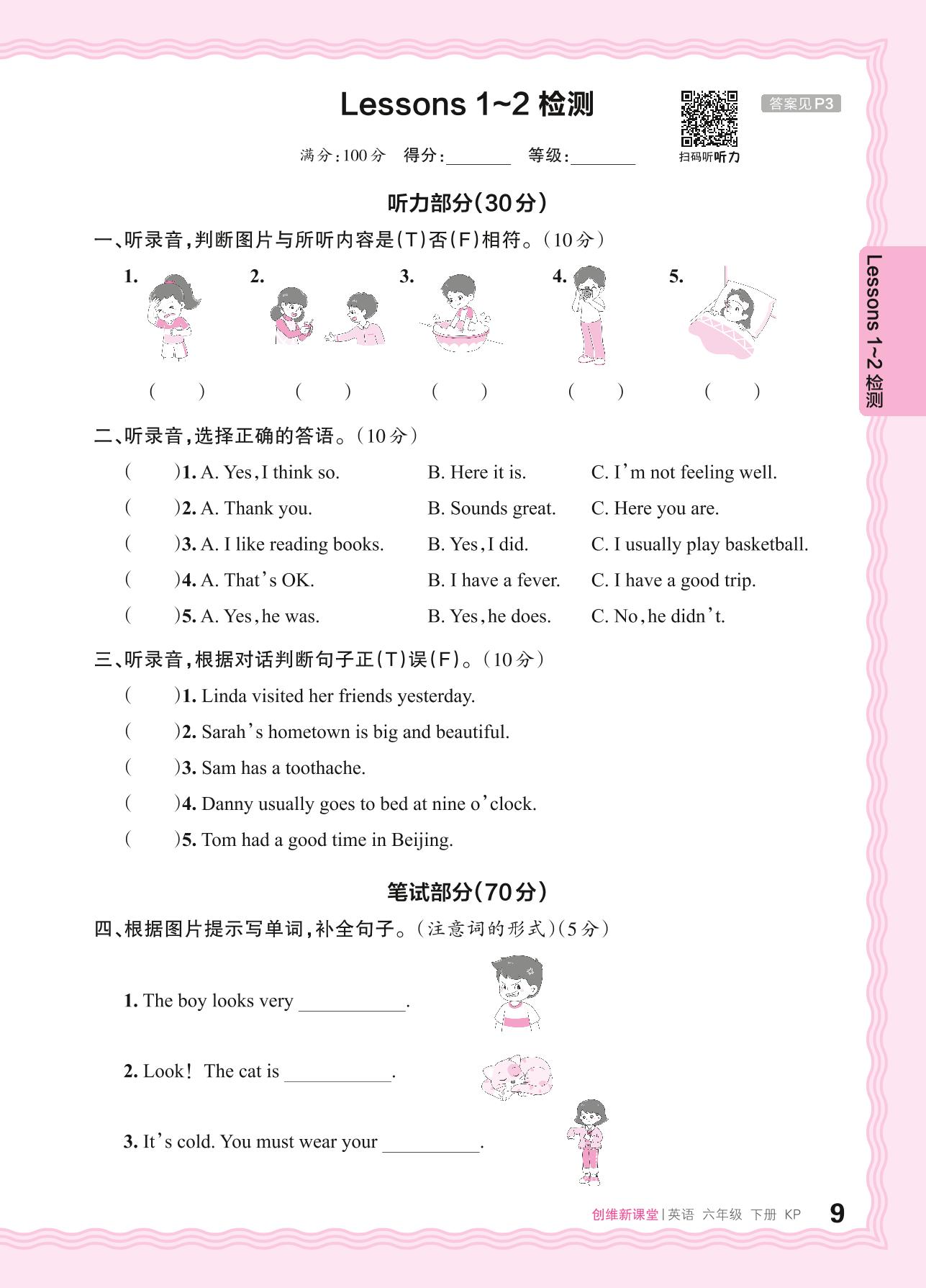 2024春下册六年级英语科普版 Lessons 1~2检测