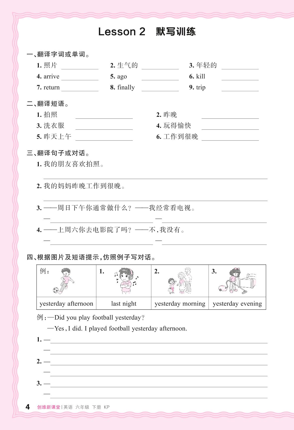 2024春下册六年级英语科普版 Lesson 2 默写训练