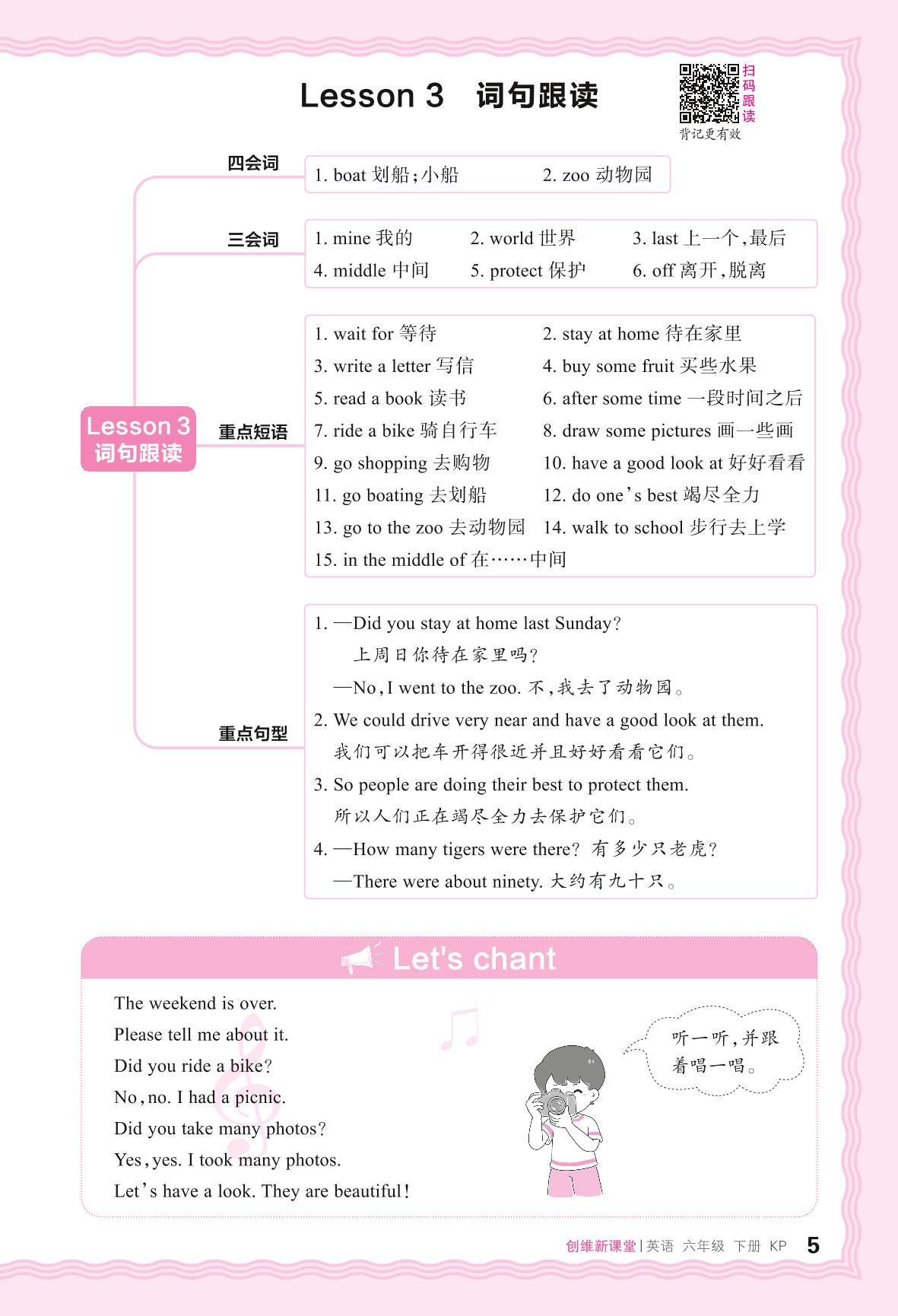 2024春下册六年级英语科普版 Lesson 3 词句跟读