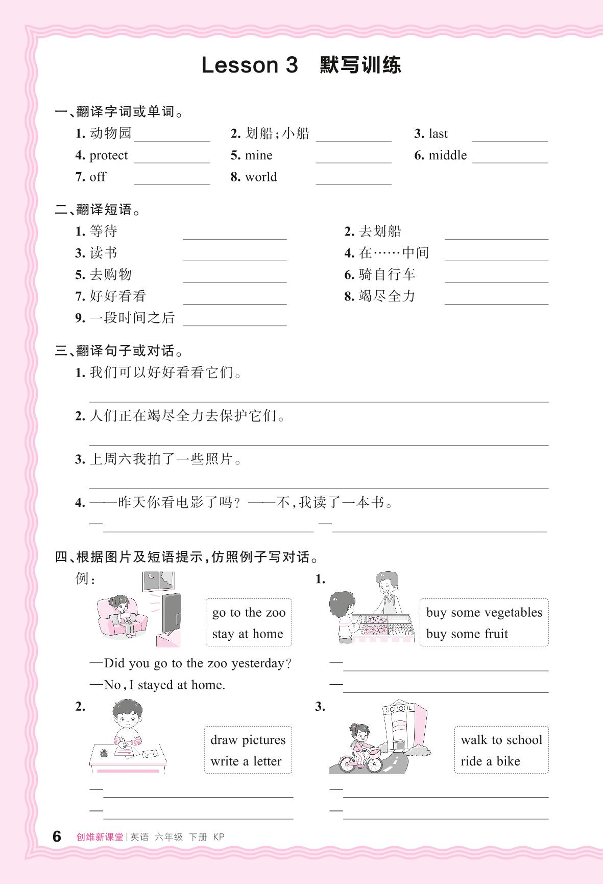 2024春下册六年级英语科普版 Lesson 3 默写训练