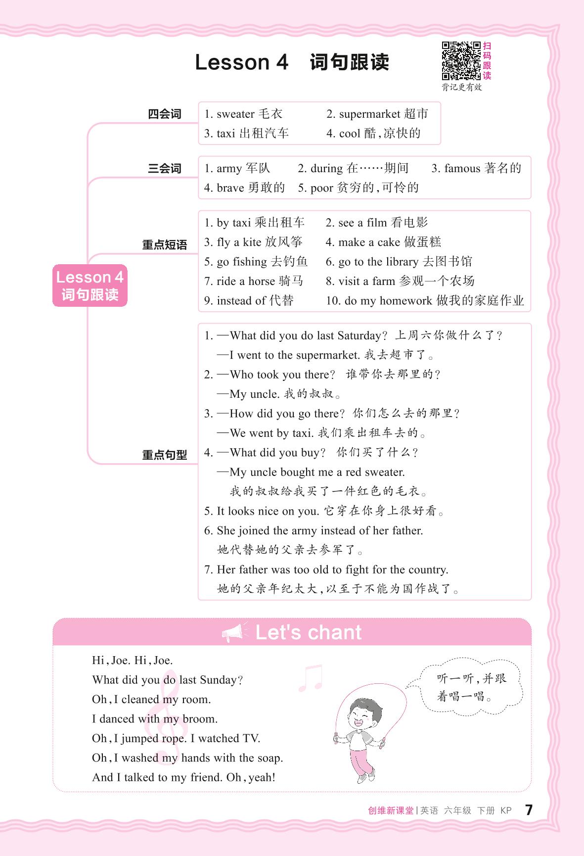 2024春下册六年级英语科普版 Lesson 4 词句跟读