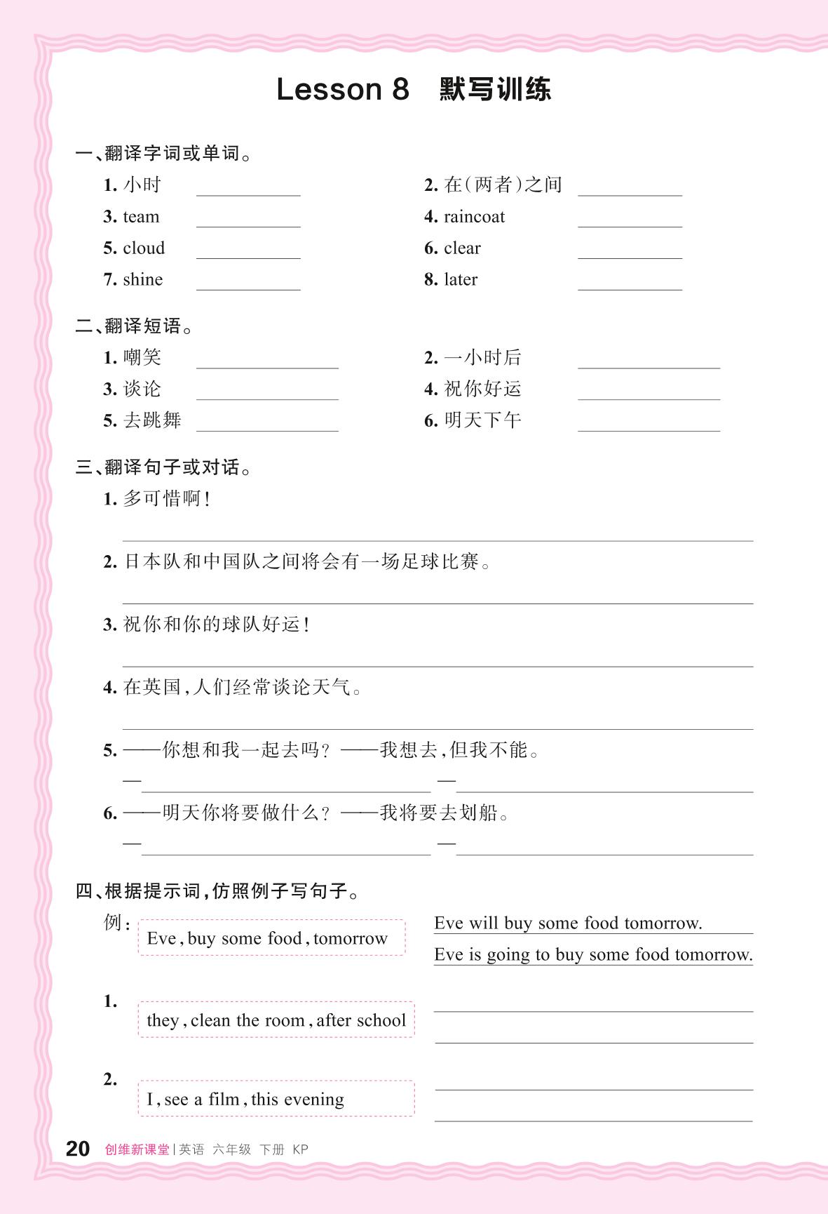 2024春下册六年级英语科普版 Lesson 8 默写训练