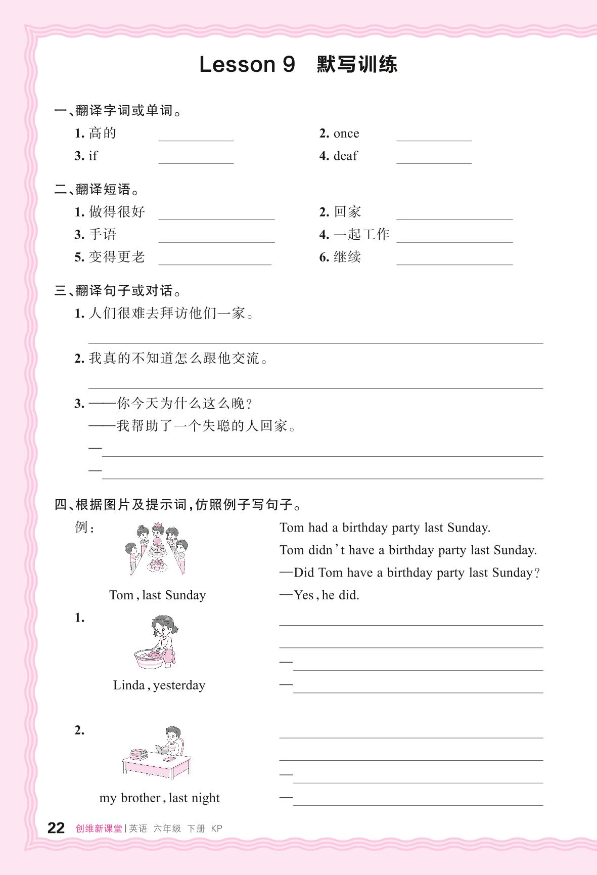 2024春下册六年级英语科普版 Lesson 9 默写训练