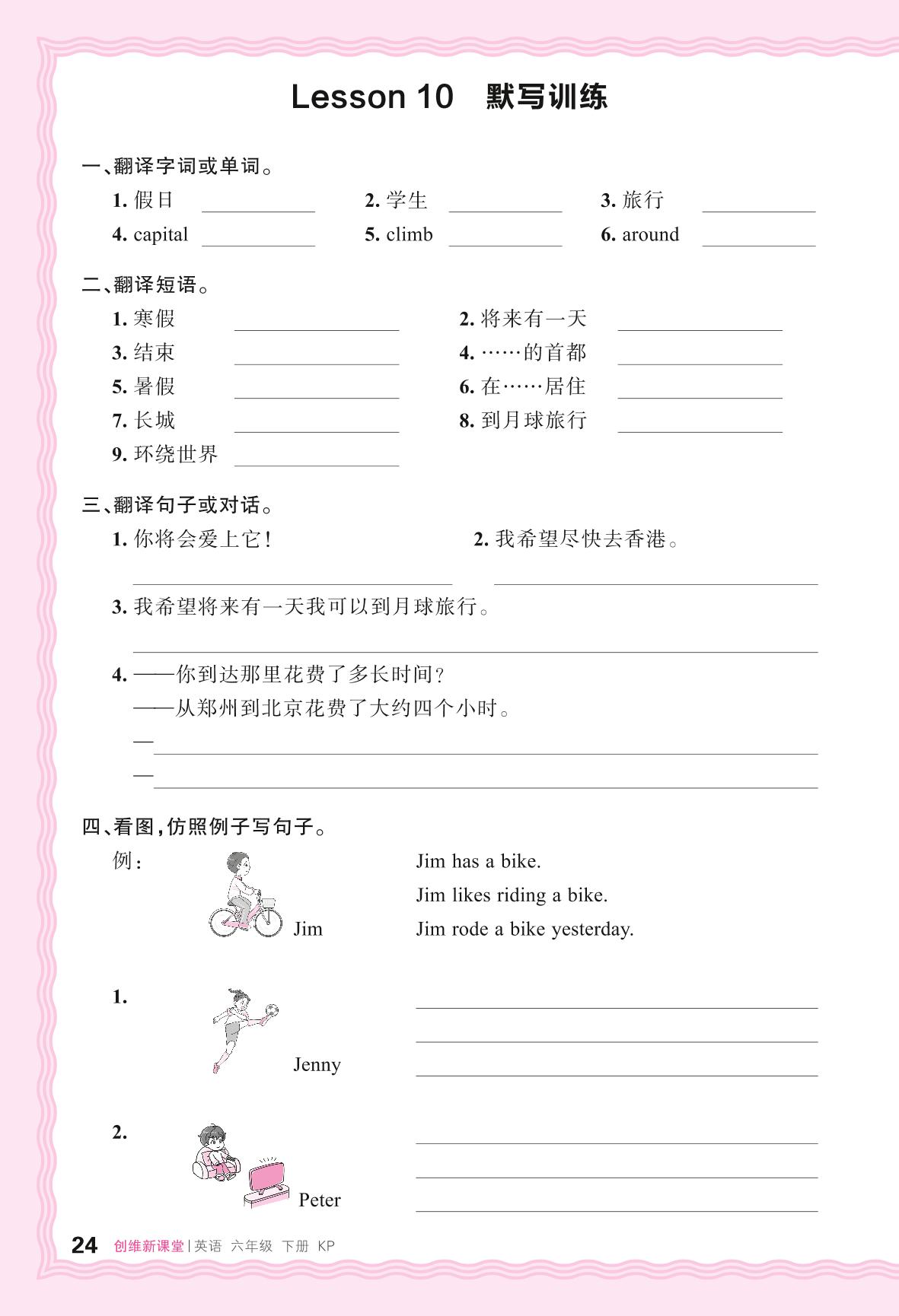 2024春下册六年级英语科普版 Lesson 10 默写训练