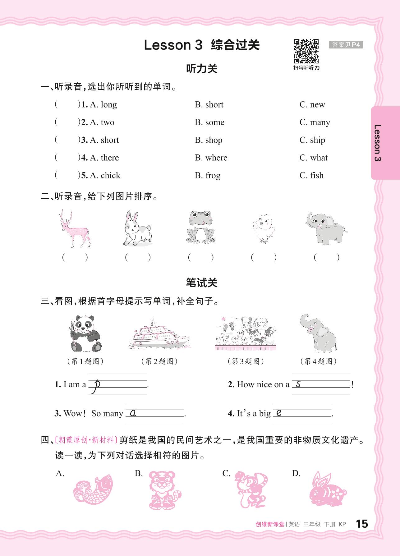 2024春下册三年级英语科普版 Lesson 3 Is that a pig?综合过关