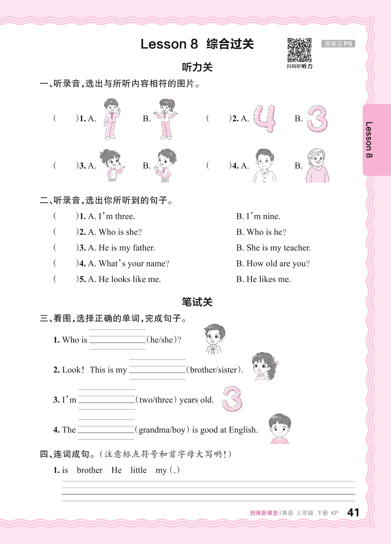 2024春下册三年级英语科普版 Lesson 8 Who is he?综合过关
