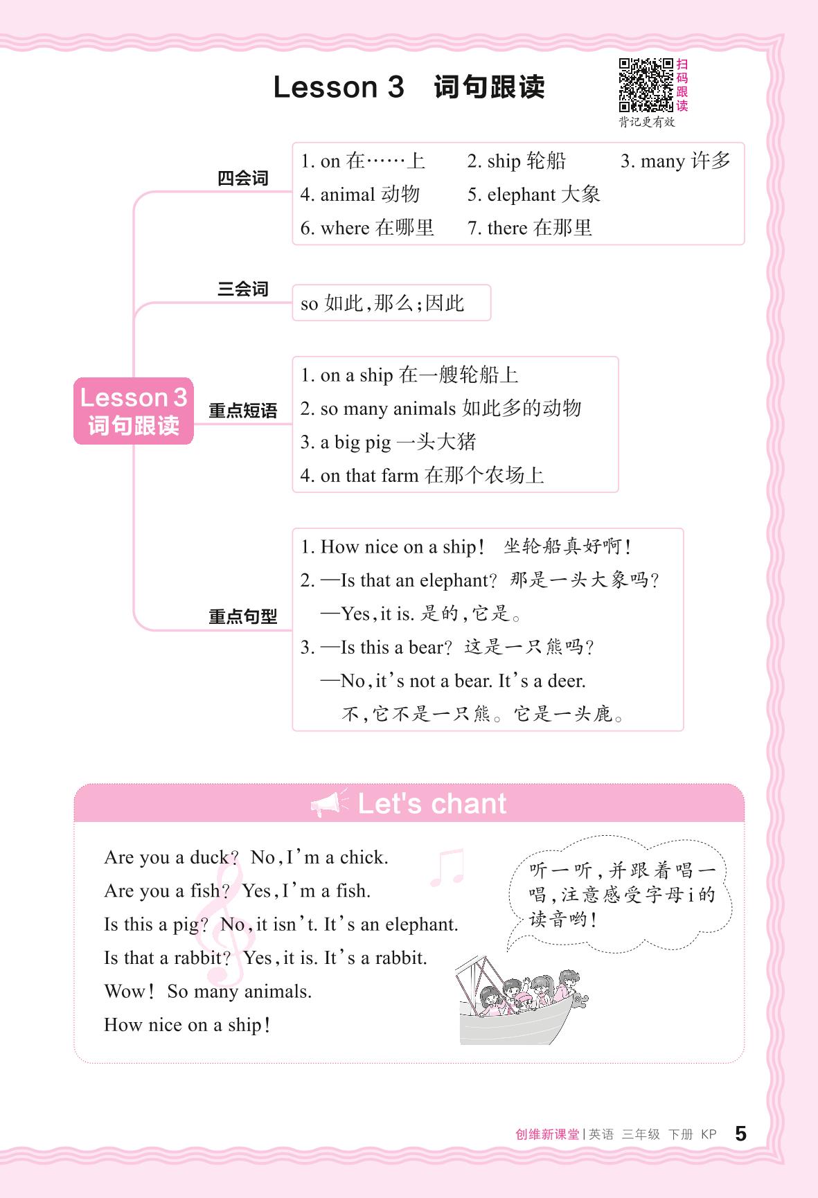 2024春下册三年级英语科普版 Lesson 3 词句跟读