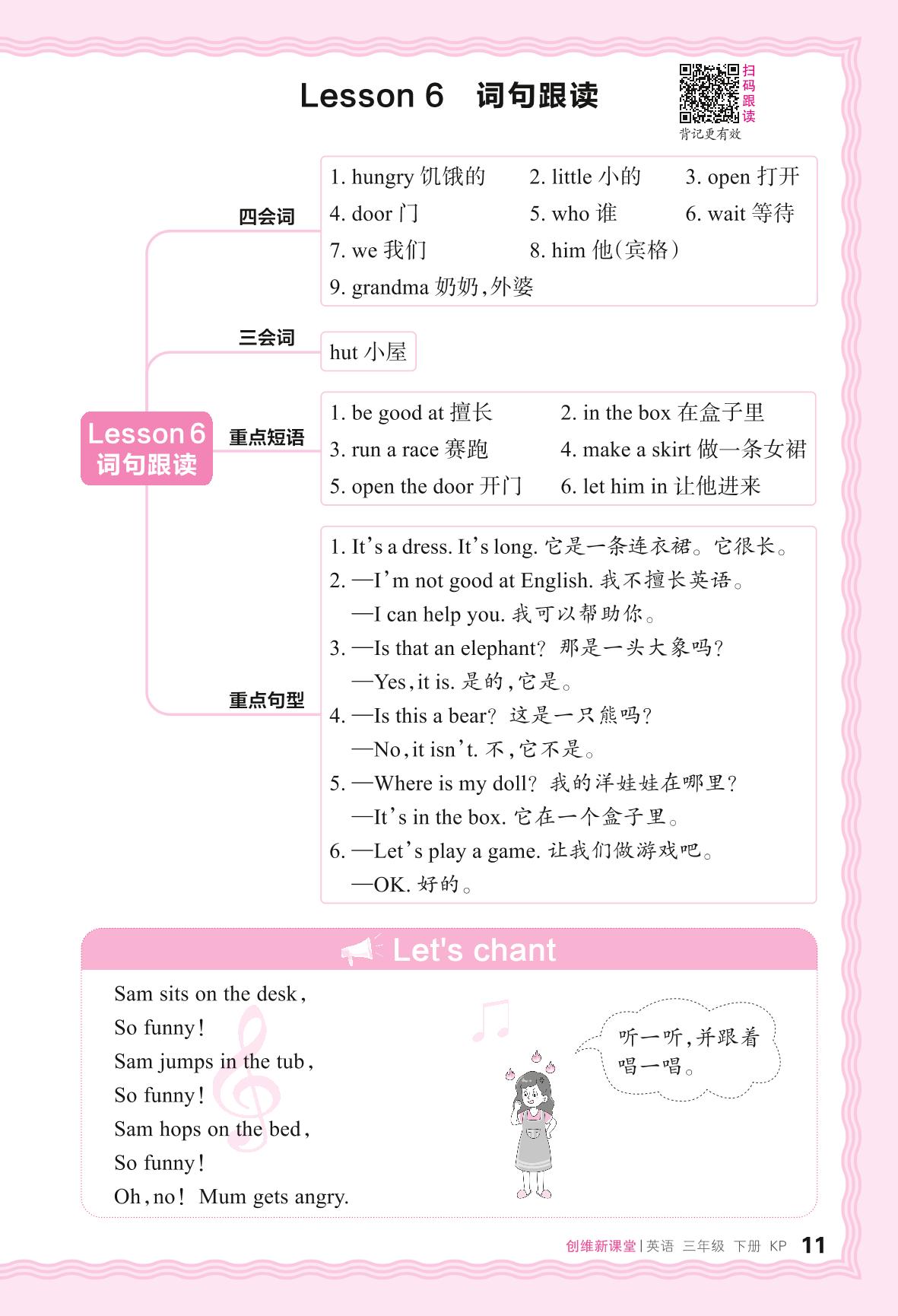 2024春下册三年级英语科普版 Lesson 6 词句跟读