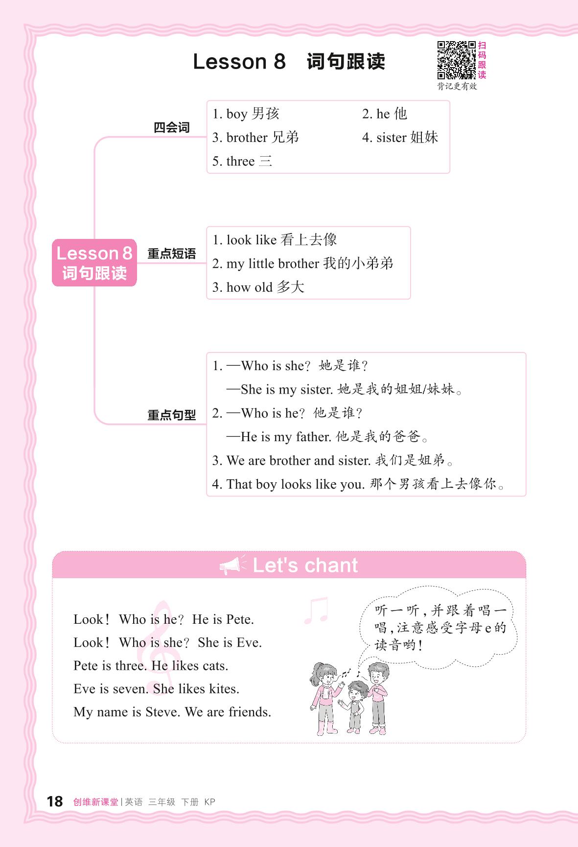 2024春下册三年级英语科普版 Lesson 8 词句跟读
