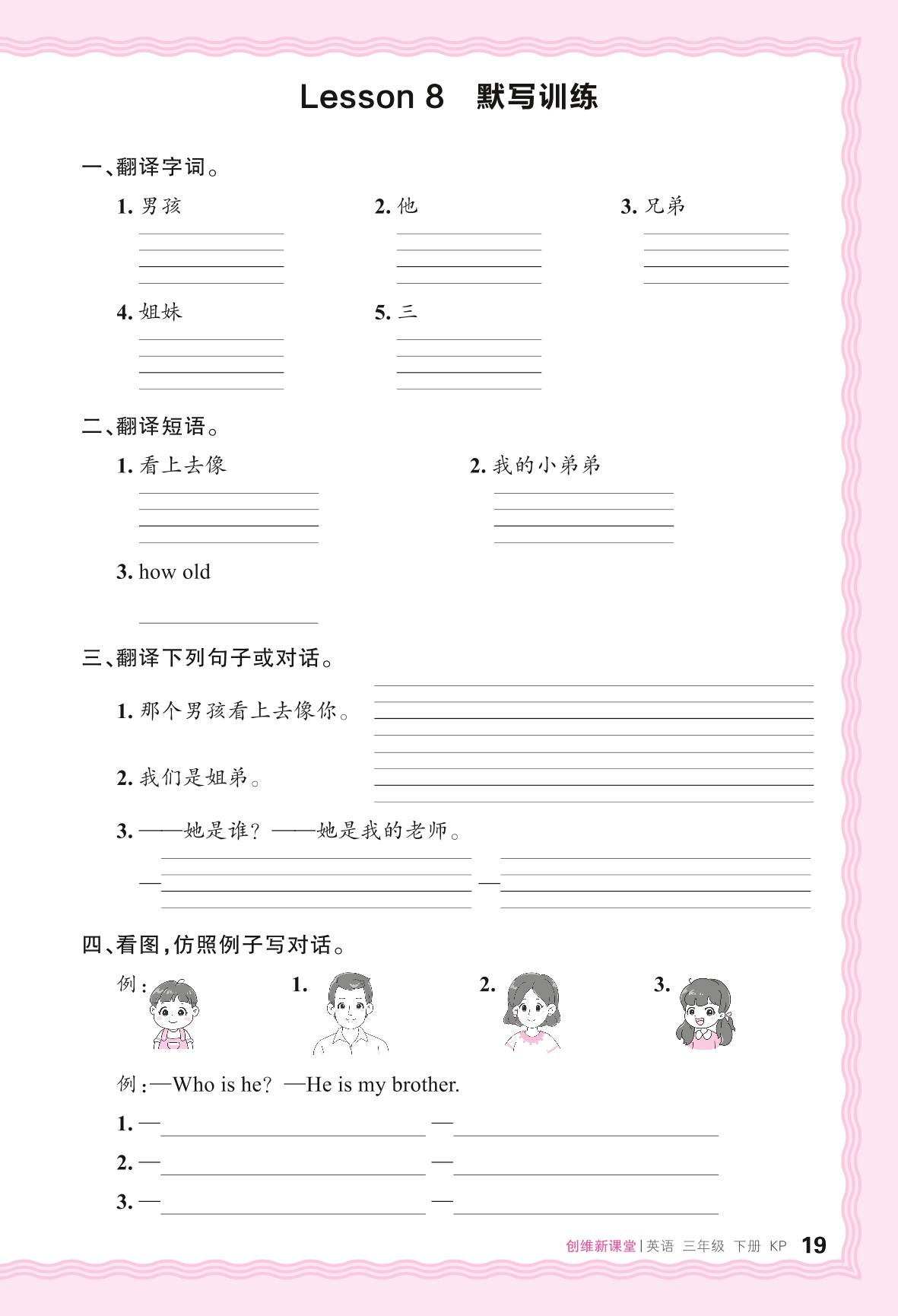 2024春下册三年级英语科普版 Lesson 8 默写训练