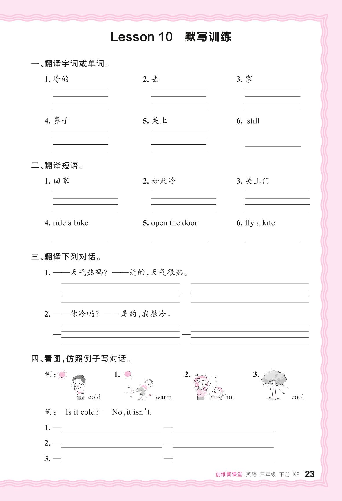 2024春下册三年级英语科普版 Lesson 10 默写训练