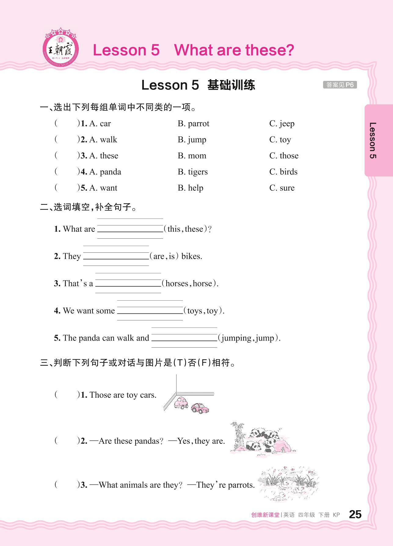 2024春下册四年级英语科普版 Lesson 5 What are these?基础训练