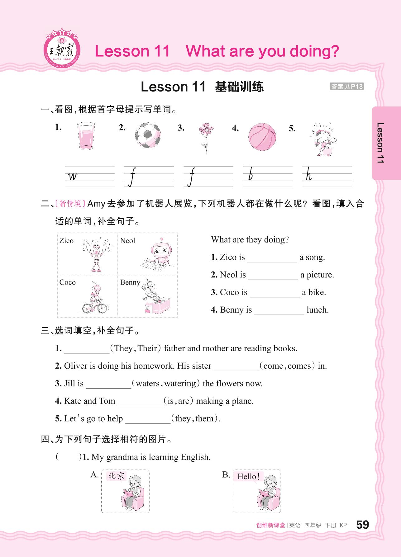 2024春下册四年级英语科普版 Lesson 11 What are you doing?基础训练