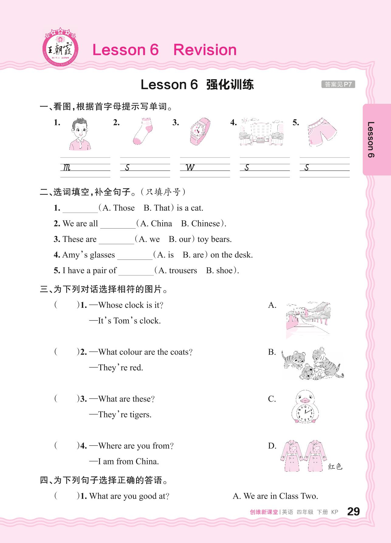 2024春下册四年级英语科普版 Lesson 6 Revision 强化训练