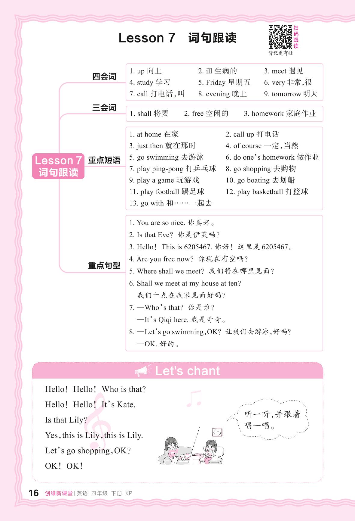 2024春下册四年级英语科普版 Lesson 7 词句跟读