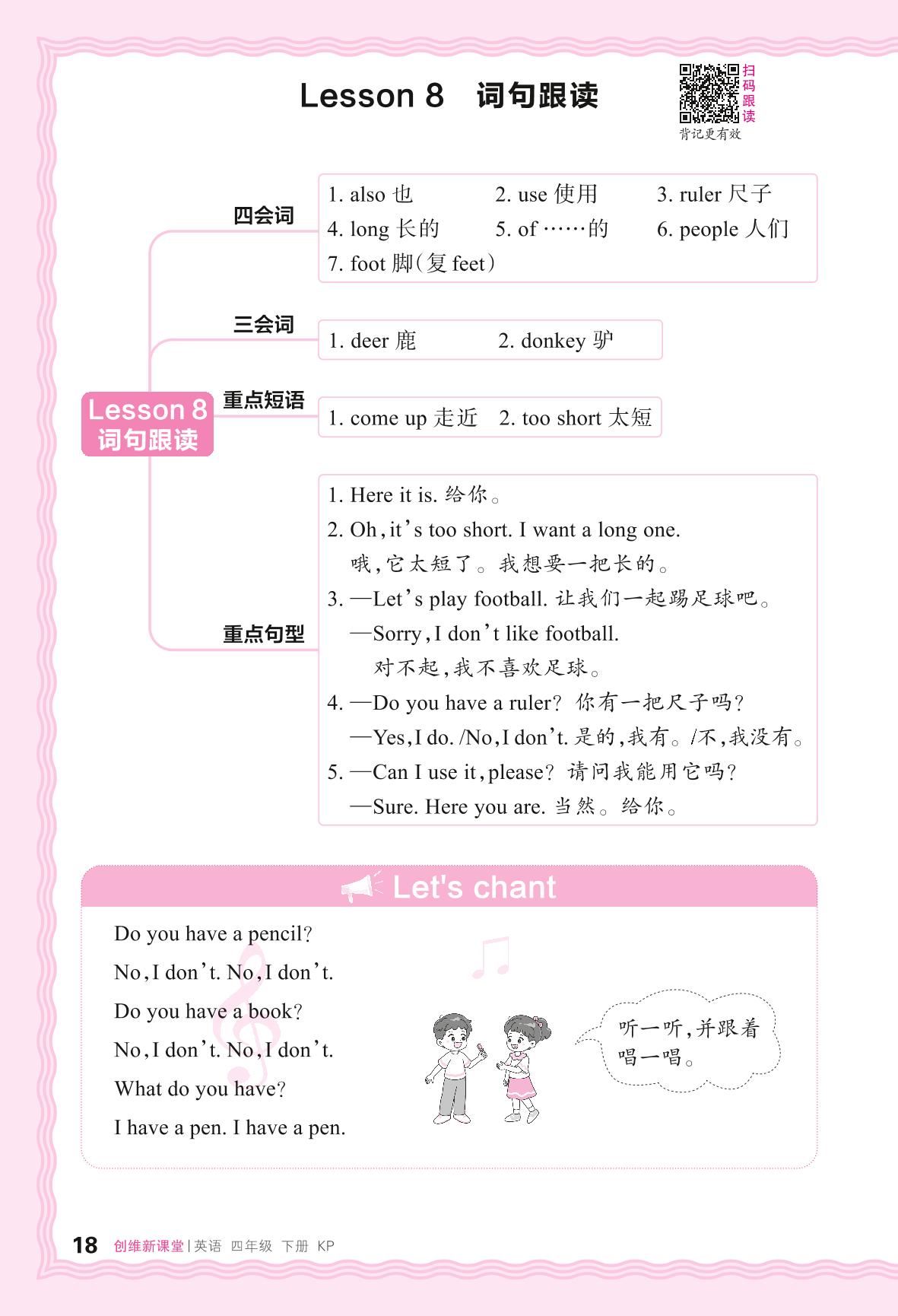 2024春下册四年级英语科普版 Lesson 8 词句跟读