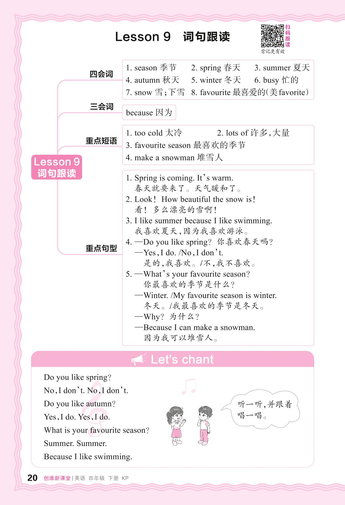 2024春下册四年级英语科普版 Lesson 9 词句跟读