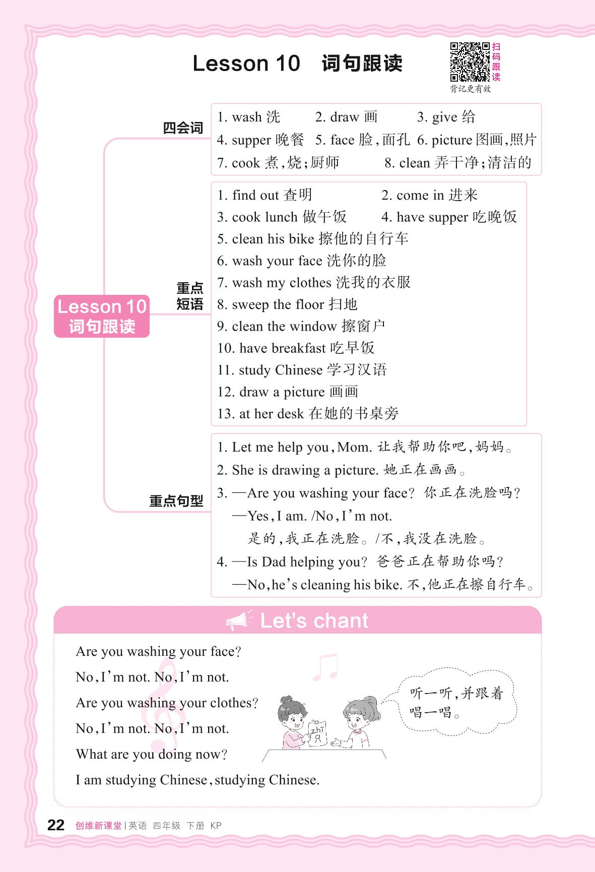 2024春下册四年级英语科普版 Lesson 10 词句跟读