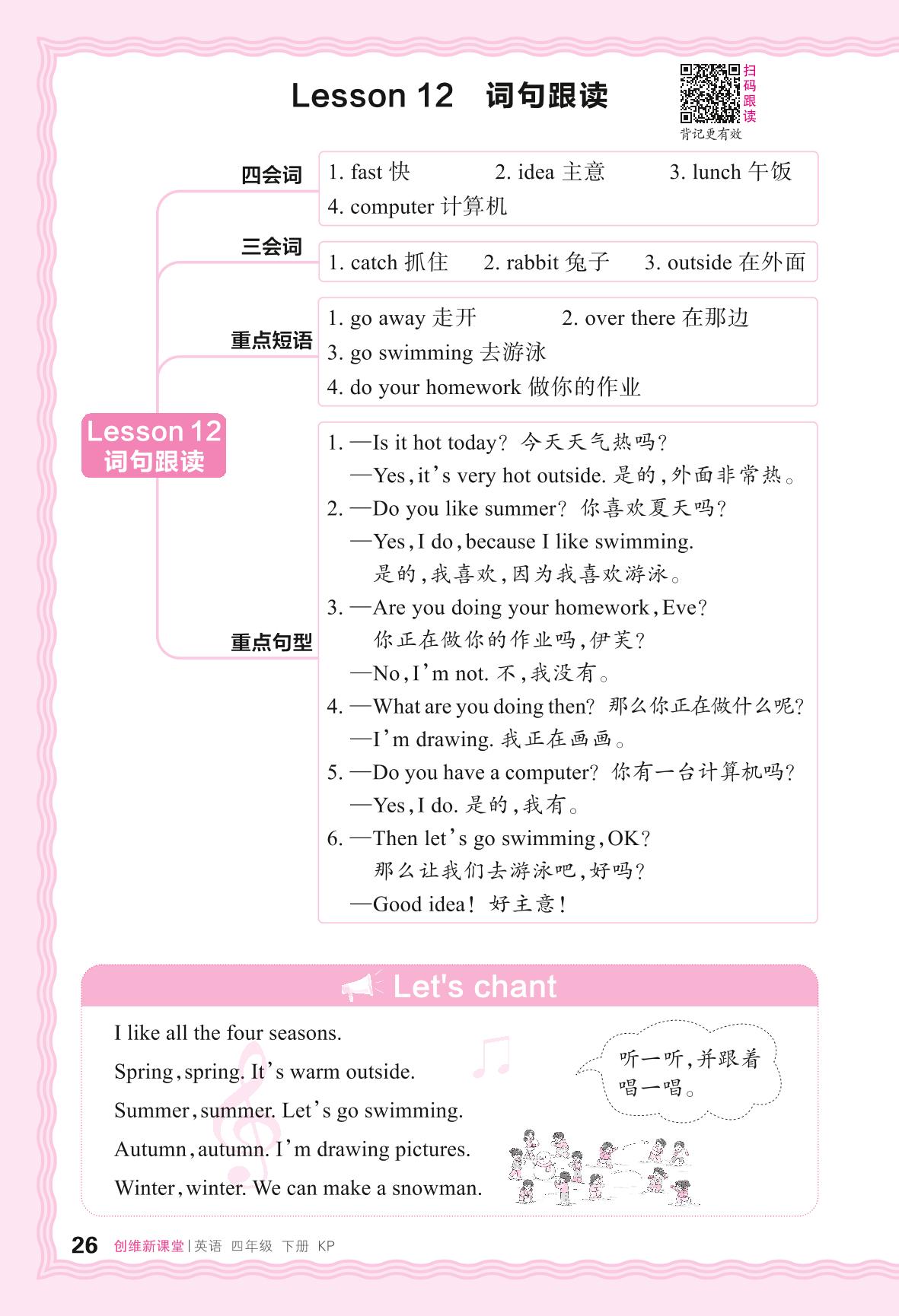 2024春下册四年级英语科普版 Lesson 12 词句跟读