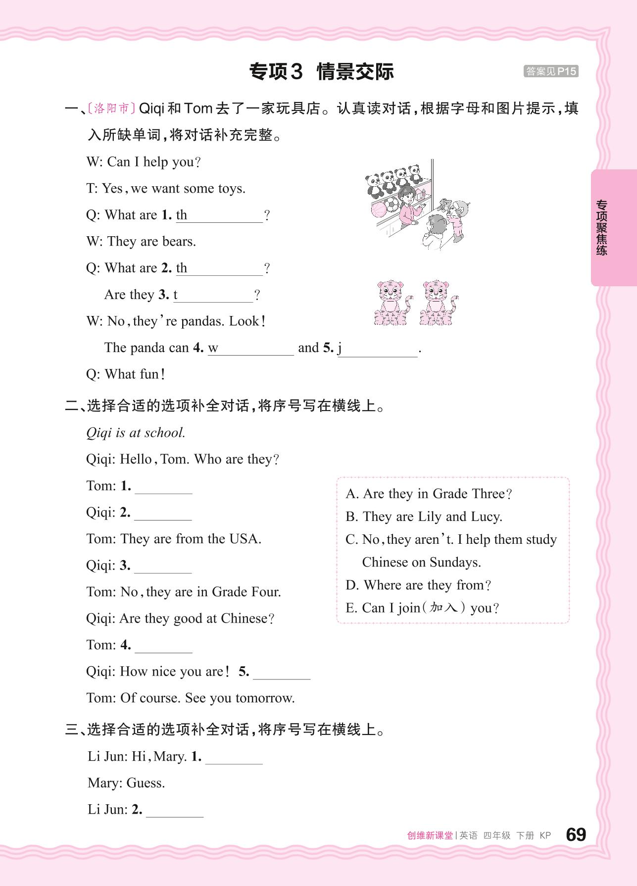 2024春下册四年级英语科普版 期末专项聚焦练——情景交际【3】