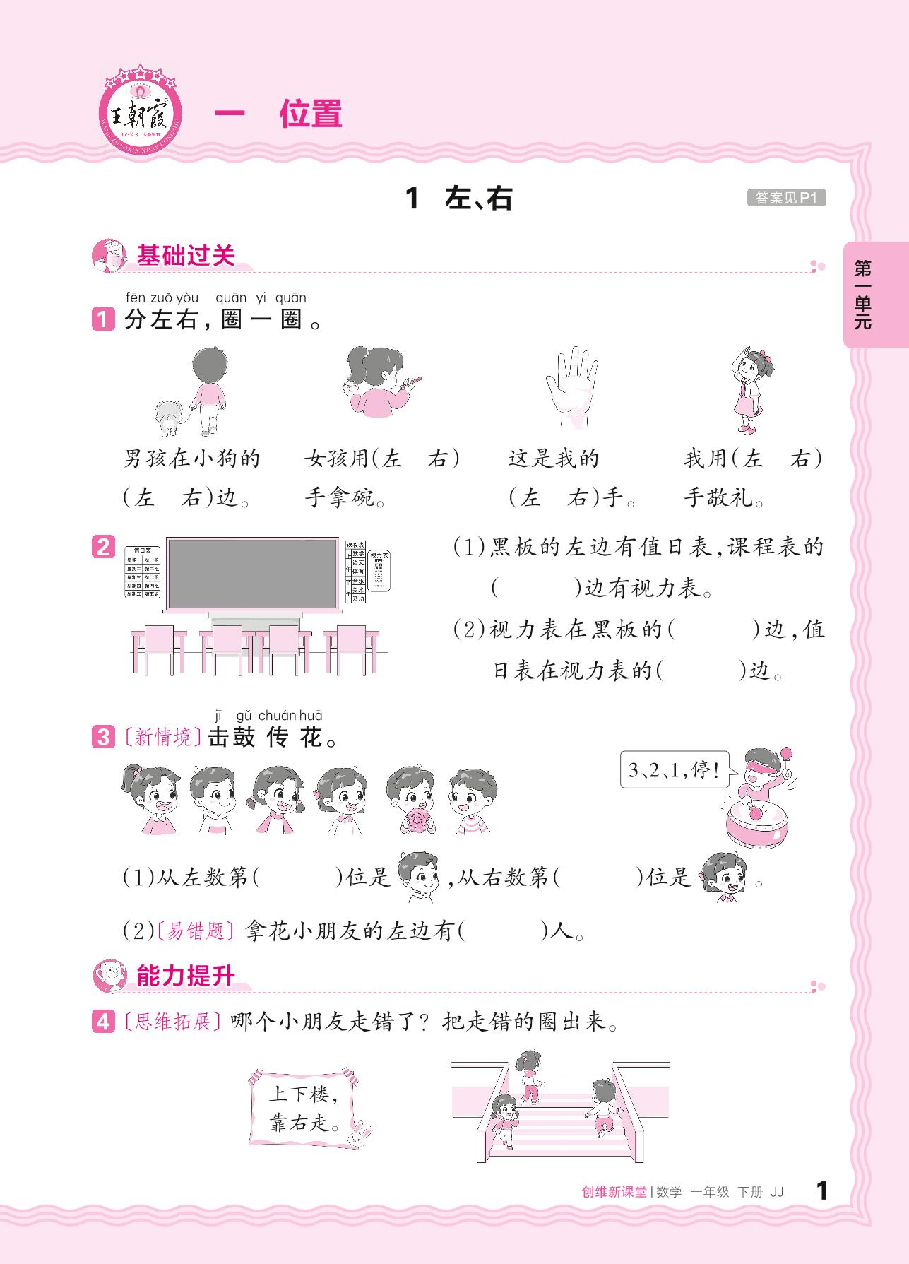 2024春下册一年级数学冀教版 第一单元 位置——1. 左、右