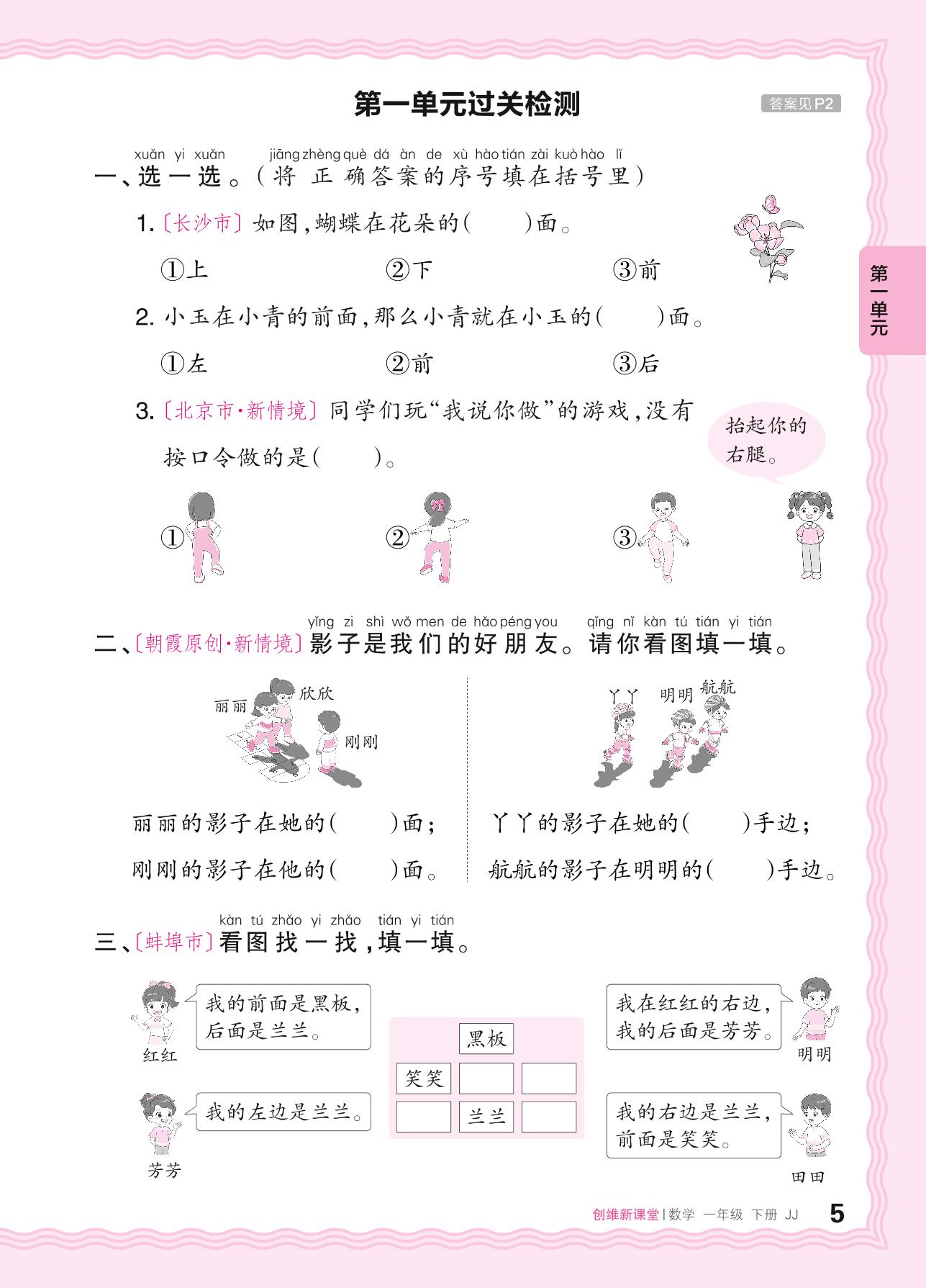 一年级数学冀教版下册单元卷