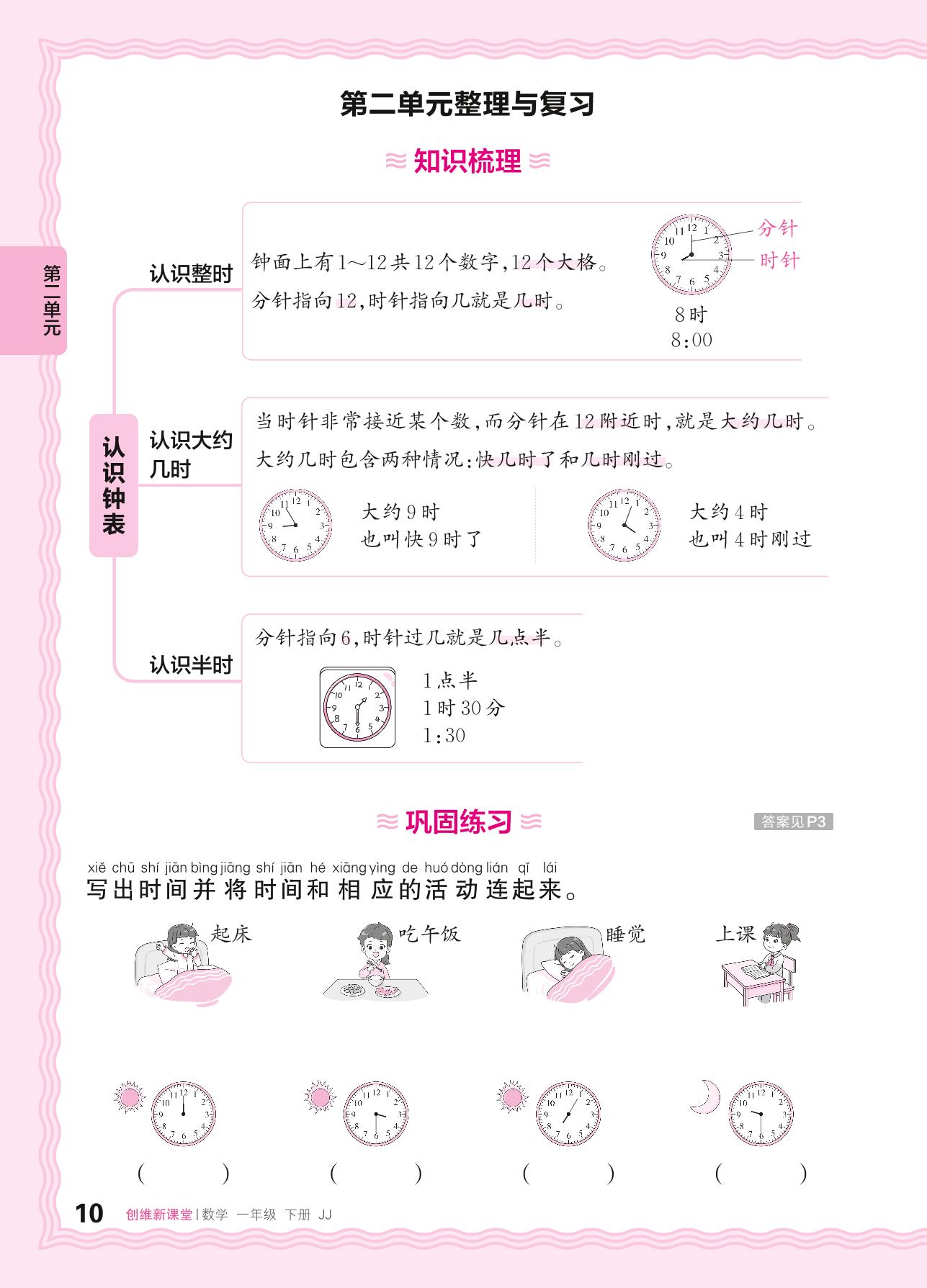 2024春下册一年级数学冀教版 第二单元整理与复习